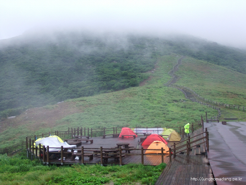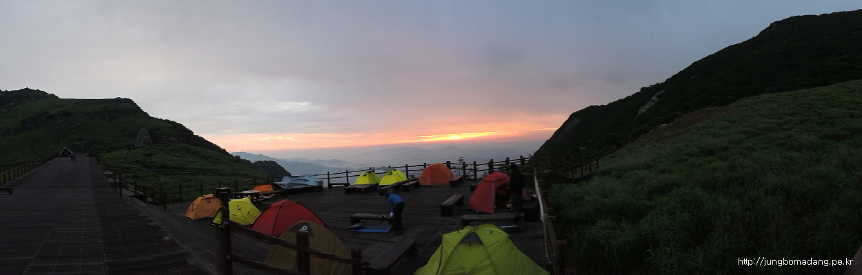 새벽에 심한 떵~ 바람으로 텐트가 꿀렁거려서 몇번 깨고 자고.... 그리고 마지막으로 눈을 팍~ 뜨니 텐트가 환합니다...?