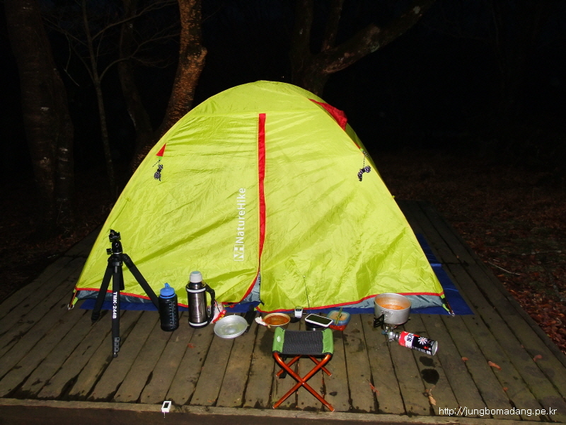 16:30 근데 이상하게 데크에 텐트치지 말라고 붙여놔서 이상하다? 했는 데, 뭐 어쩔수 없이 그 위쪽에 맨땅에 텐트를 치는 곳으로 되어 있어 그냥 텐트를 쳤습니다. 또한, 압축티슈 몇개를 꺼내서 후라이며, 방수포에 전날 묻은 물기를 깨끗하게 닦고 쾌적한 상태를 유지합니다. 오늘은 비소식이 없는 데, 내일 오후부터 비소식이 있는 데, 살짝 걱정이네요!