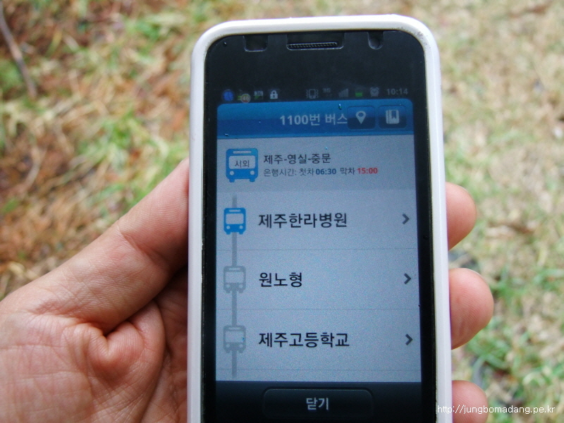 제주버스 어플을 바라봅니다... 반대편 것을 보니 한라병원이네요...