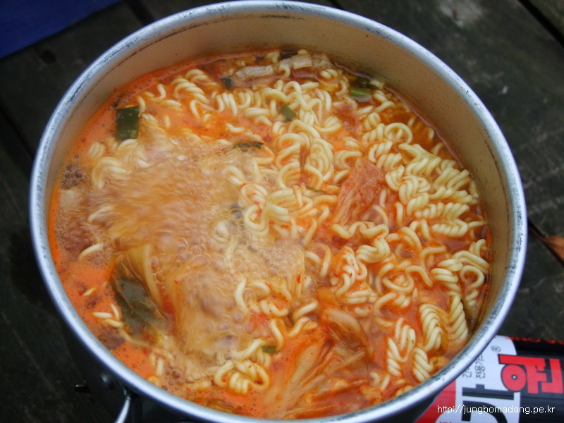 15:44 점심인지 저녁인지 모를 정체불명의 식사입니다. 여기엔 남은 음식인 라면 1개, 밥 2덩어리, 김치 싹 털어서 식사 겸 안주겸 먹습니다. 몸도 개운하고, 좀 욱신거리긴하지만, 이순간 만큼은 대통령도 안부럽네요!!
