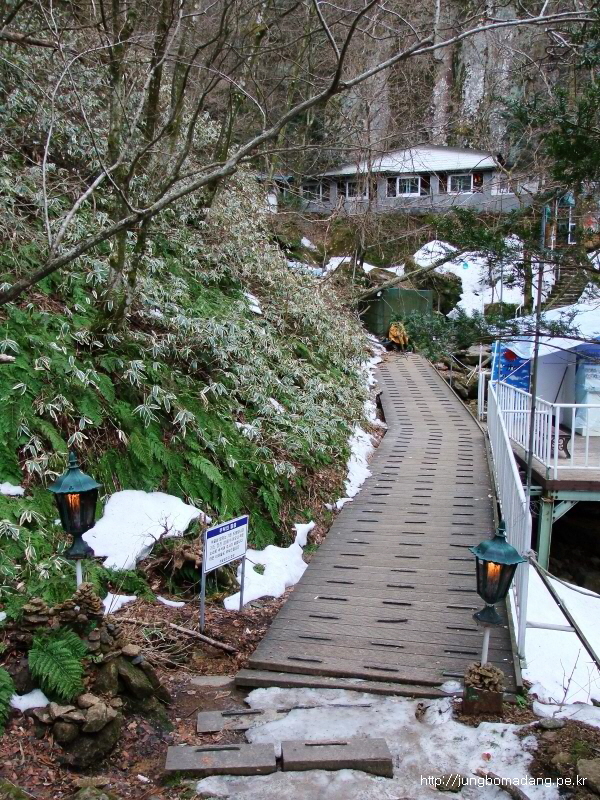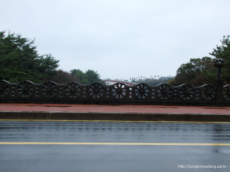 건너편에 천제연폭포 안에 있는 오작교도 보이네요...