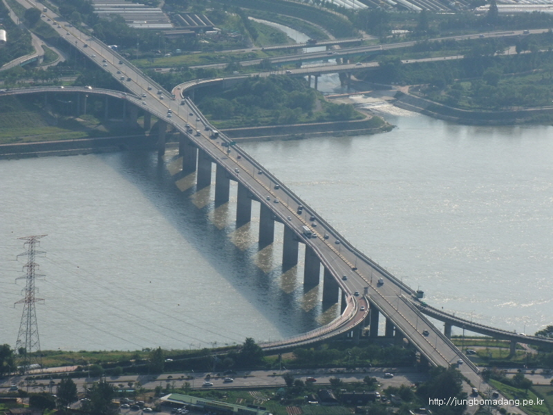 그 아래 팔당대교도 줌으로 땡겨보니 자동차들이 장난감처럼 느껴진다.