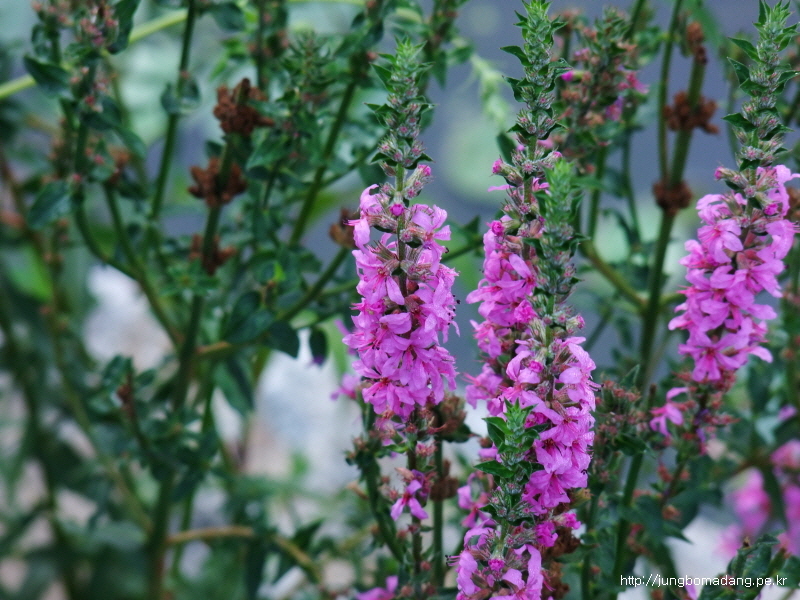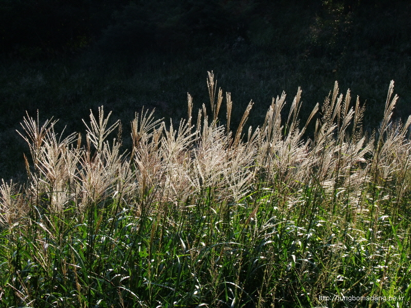 햇볕에 반짝이는 은빛 강물을 배경으로 사이 좋게 서있는 나무들이 보기좋다.