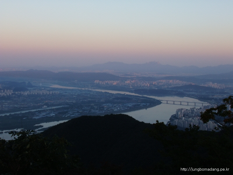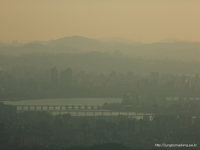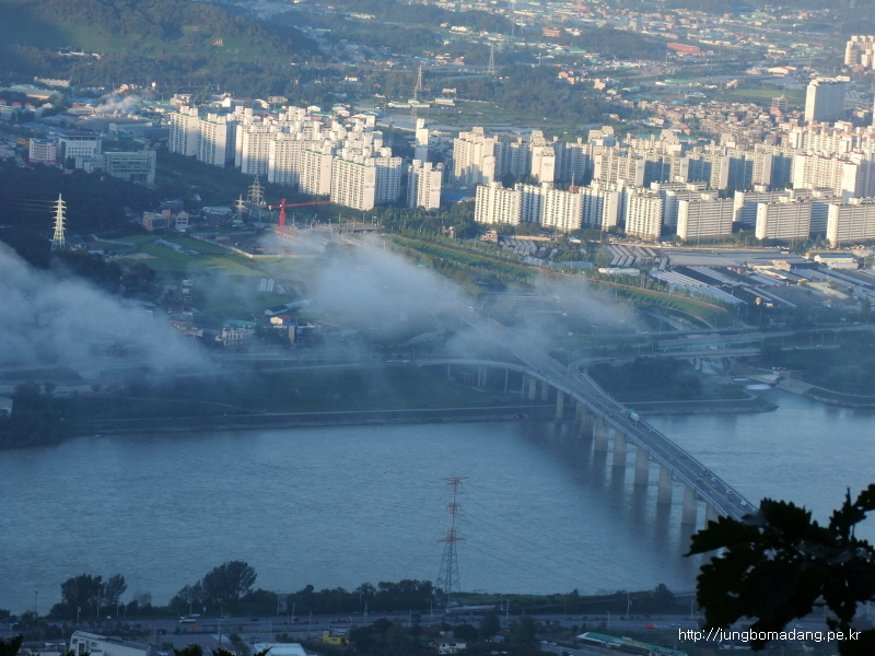 신기한건 여기 예봉산을 경계로 위쪽은 운무가 펼쳐지는 데, 서울쪽은 허당인 것이다.