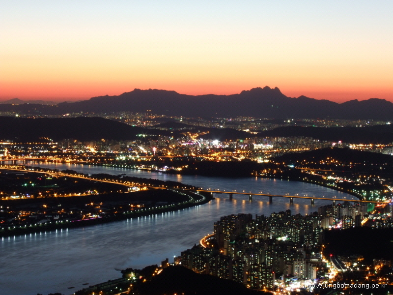 지는해를 바라보며 여기 저기 찍어 보는 데, 저 다리는 올림픽대교~
