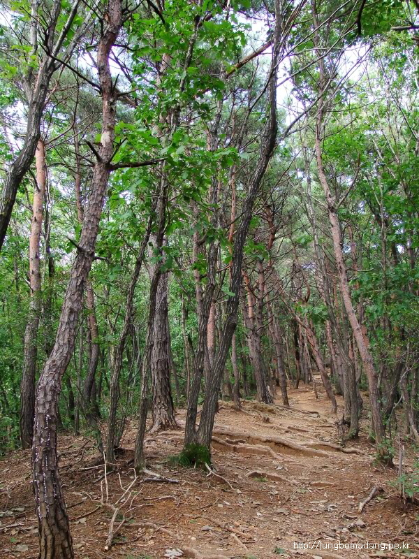 등산로에 접어드니 구름이 해를 가려죽 나무가 시원스레 뻗어있고, 시원한 바람도 불고... 식수에 대한 고민은 안해도 될 듯