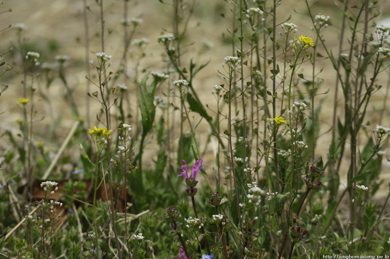 광대나물 - 주위로 노란건 꽃다지, 흰꽃은 냉이, 바닥에 파란 건 큰개불알풀
