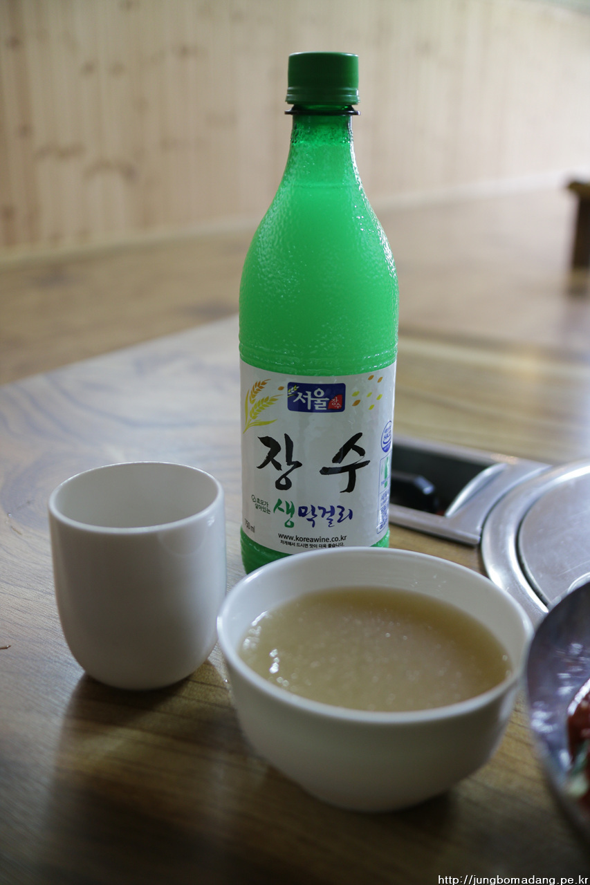 막걸리나 메뉴판에 막걸리가 언급이 없길래 시키려는 데, 어째 불안 하더라니, 앞집 편의점에서 사온 듯...ㅠ.ㅠ 물컵은 또 뭐냐!