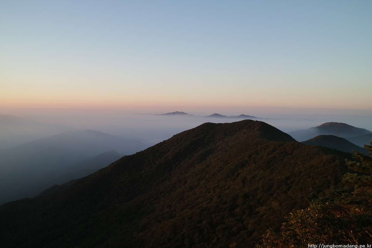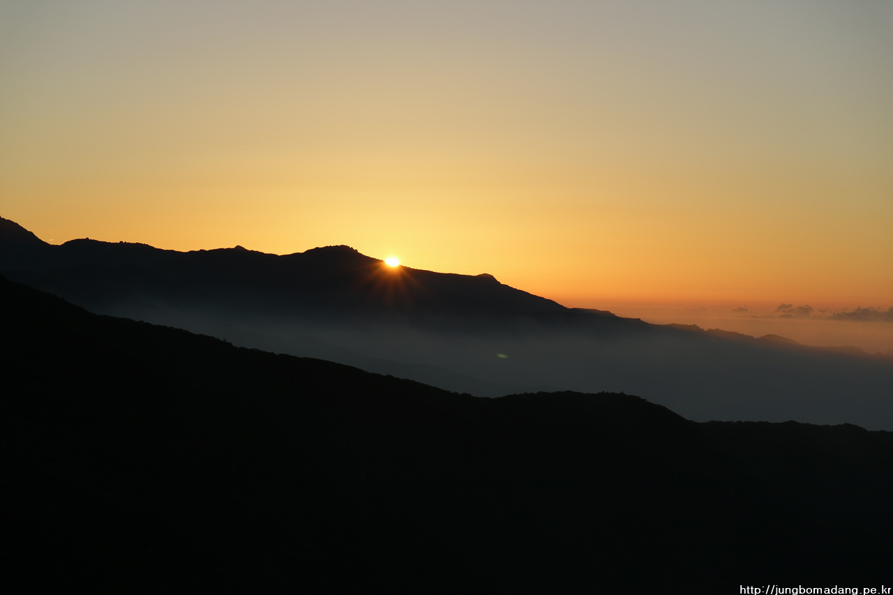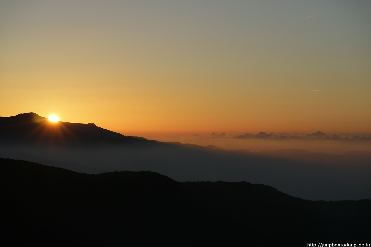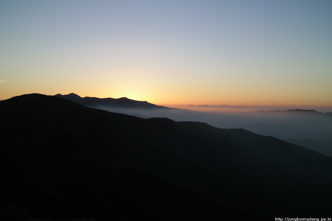 정말 삼도봉 도착한지 1분도 안되어 망원 렌즈로 교체하는 타임에 보다 시피~~ 아마 별 찍는다고 했으면 일출은 못봤을 거예요.