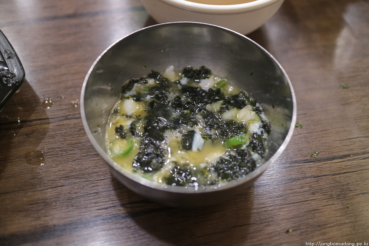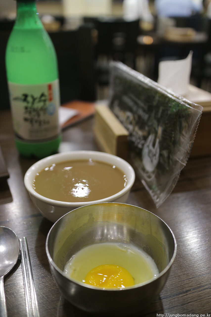 버벅대고 있으니 사장이모님 오셔서 김을 부숴서 수란에 넣어 마시는 거라고, 나머지 김은 부숴서 국밥에 뿌려 먹거나 또는 국밥 드실때 김에 싸드시면 더 맛나여. 물론 국밥 자체만 먹어도 맛나구요. 참고로 두번째줄 국밥은 좀 걸걸한 맛이 특징이라고 합니다. 다음에 도전! ^^. 수란 위에 모주도 보이네요.