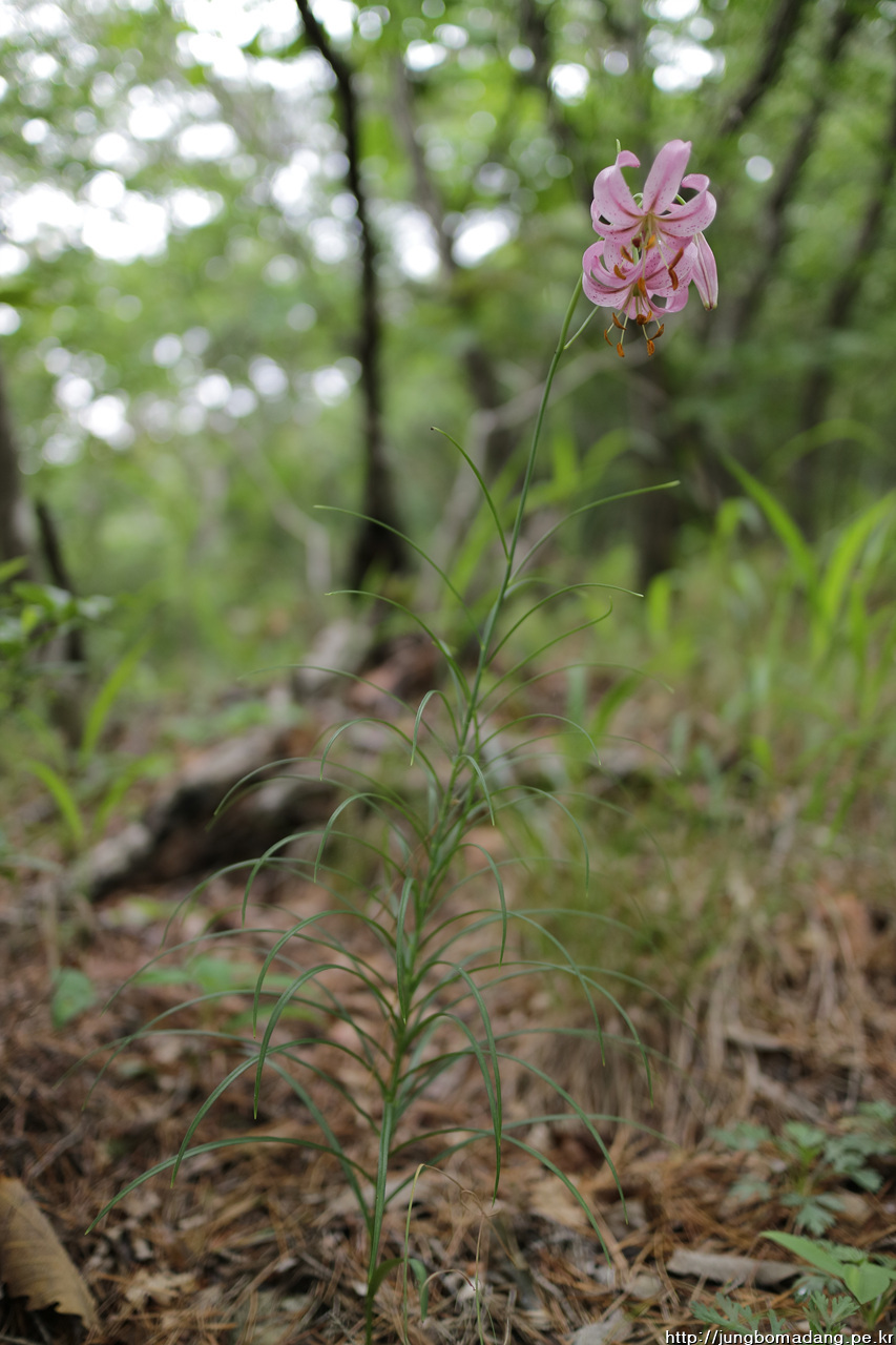 솔나리 - 잎이 소나무잎 모양같다고 해서 솔나리입니다. 색깔도 보통 나리류들이 주황빛인데 반해 연분홍빛이 새초롬합니다.