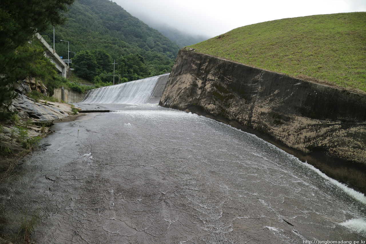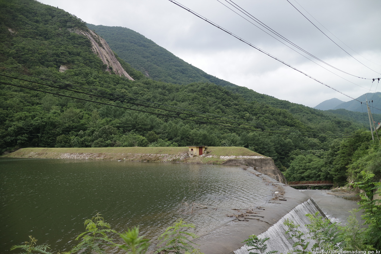 저수지를 건너야하는 데... 저 아래 다리가 보이네요.