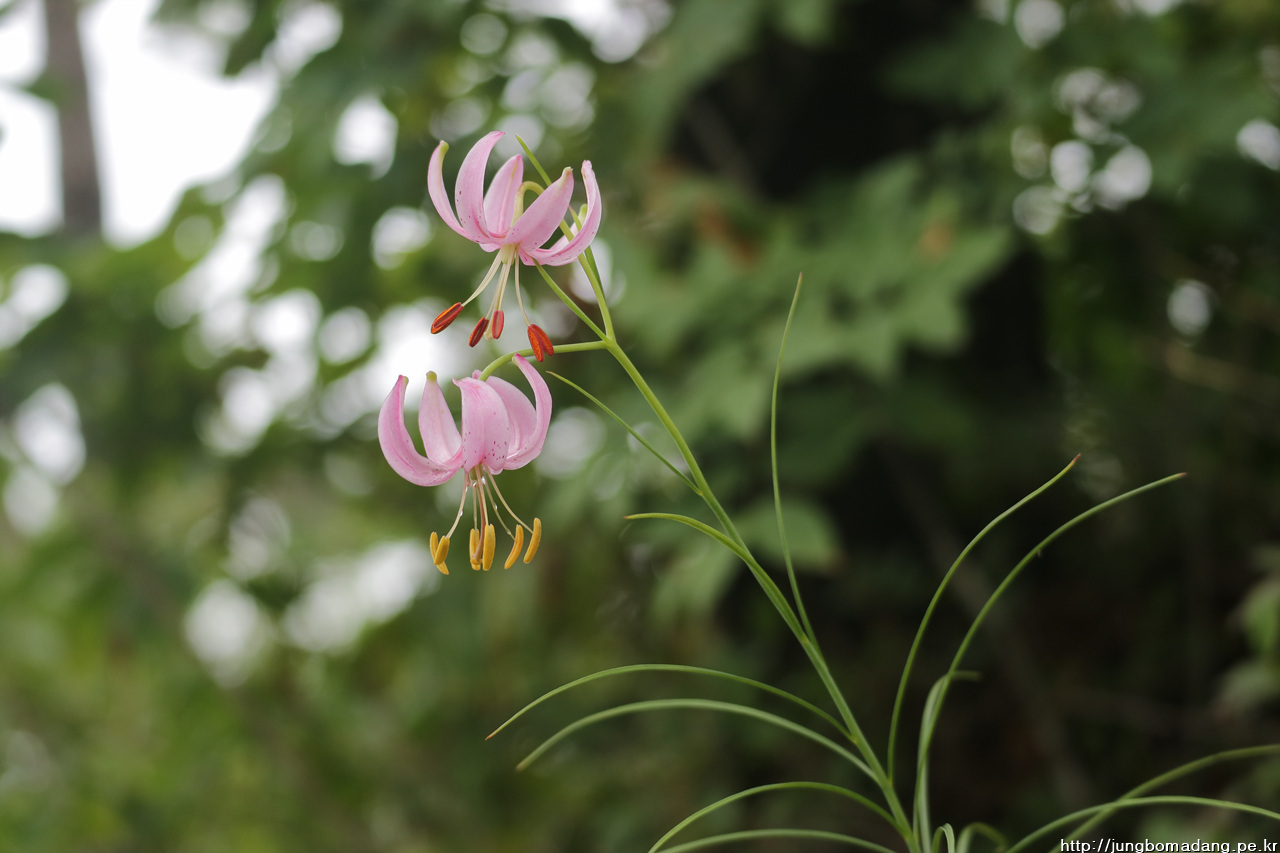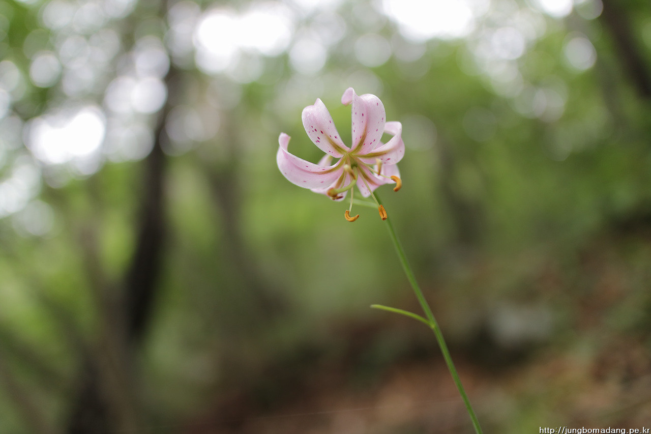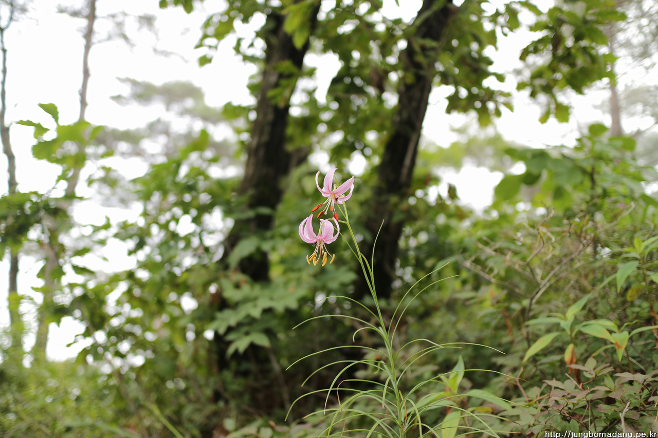 솔나리 - 잎이 소나무잎 모양같다고 해서 솔나리입니다. 색깔도 보통 나리류들이 주황빛인데 반해 연분홍빛이 새초롬합니다.
