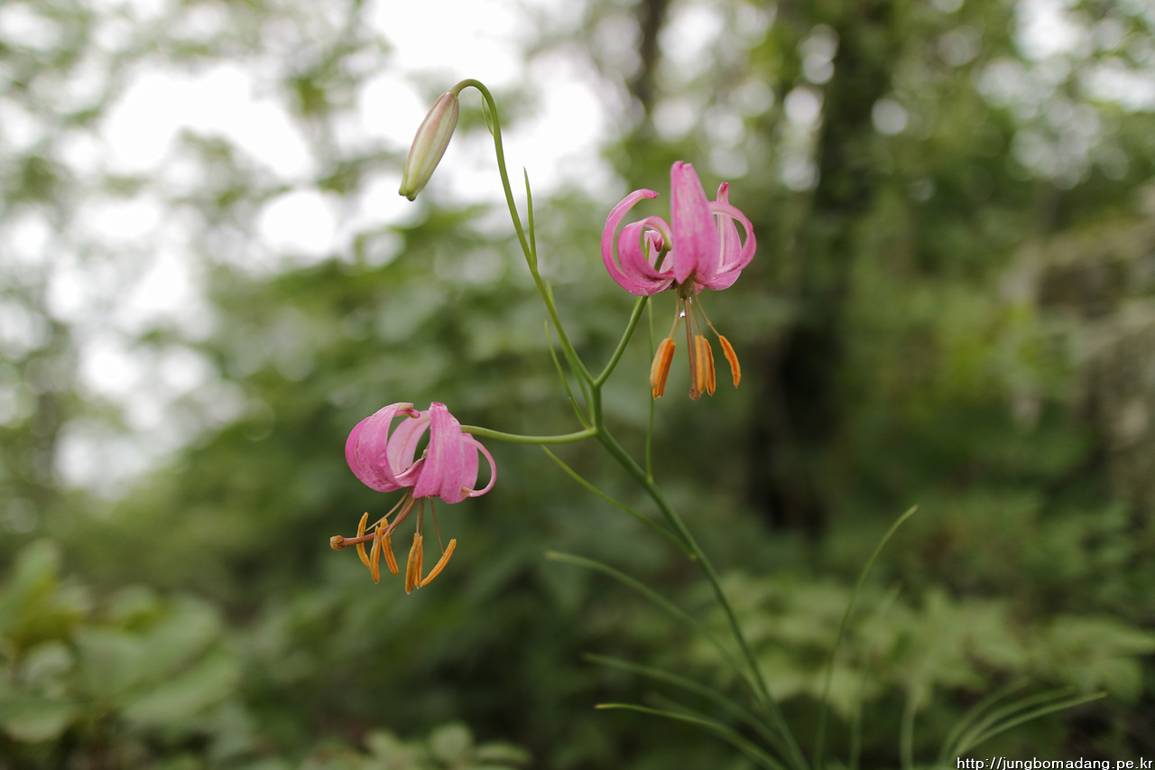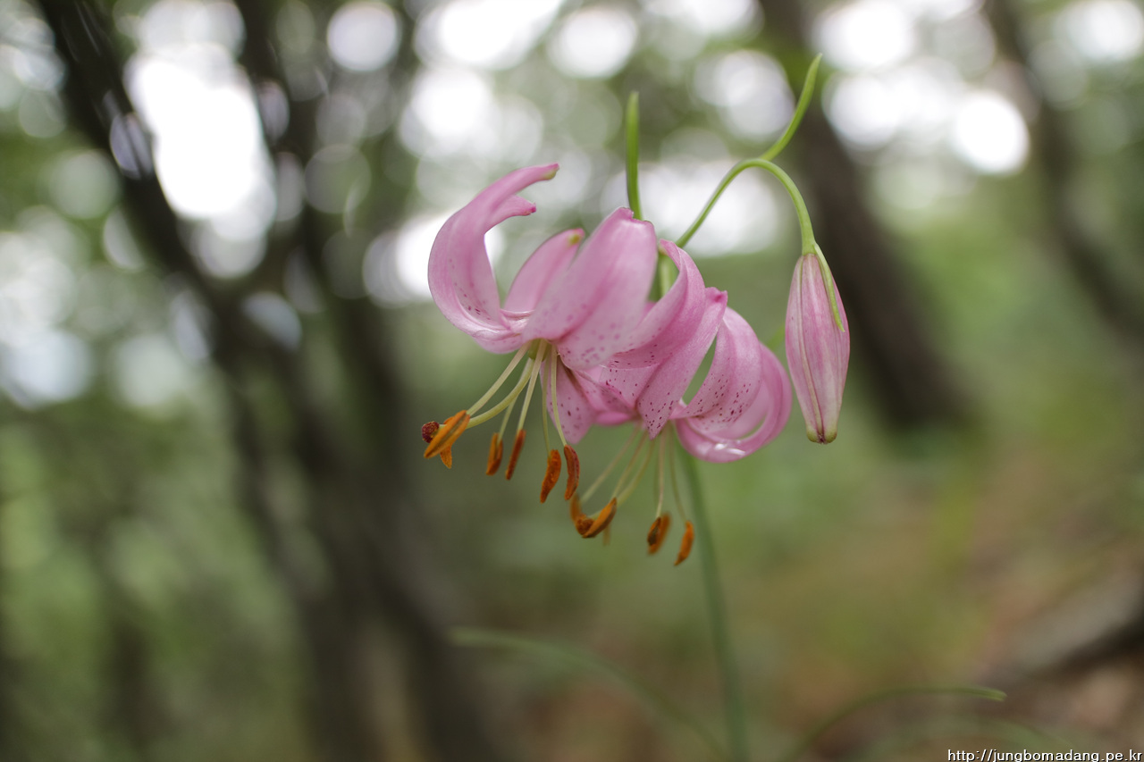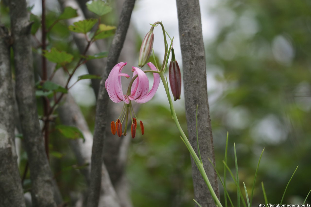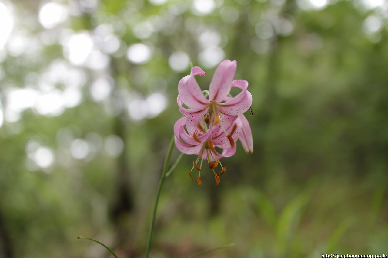 솔나리 - 잎이 소나무잎 모양같다고 해서 솔나리입니다. 색깔도 보통 나리류들이 주황빛인데 반해 연분홍빛이 새초롬합니다.