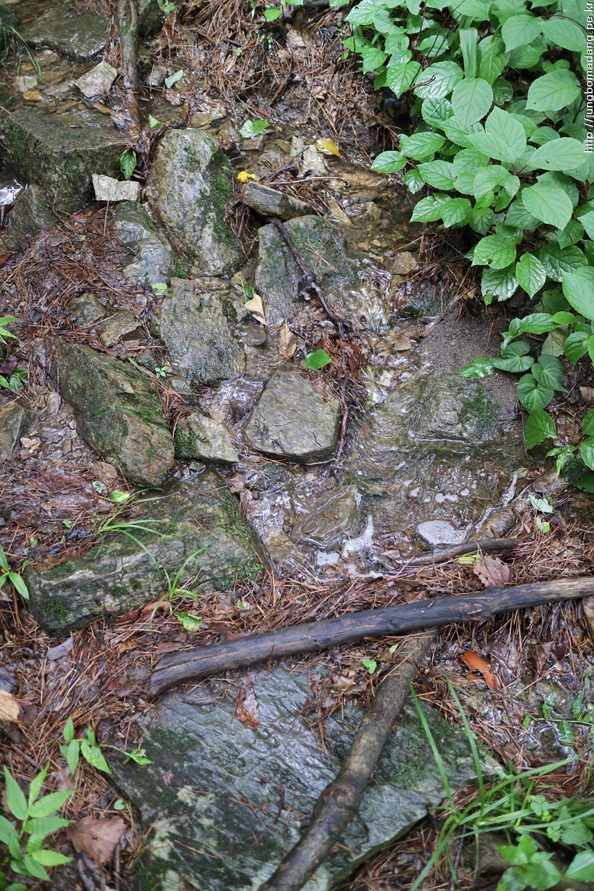 오늘 깜빡하고 손수건을 안가져왔는 데, 어떻할까 하다 잔머리 써서 코인티슈 한장으로 땀을 닦기로 했는 데, 아놩! 오늘 생수는 한모금도 준비 안해오고 콜라와 커피만 준비했던 것입니다. 촴나~~ 그런데 다행히 이맘때 등산로에 물이 살짝 보이네요.