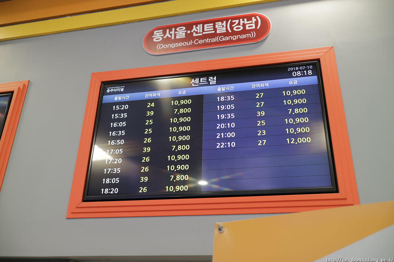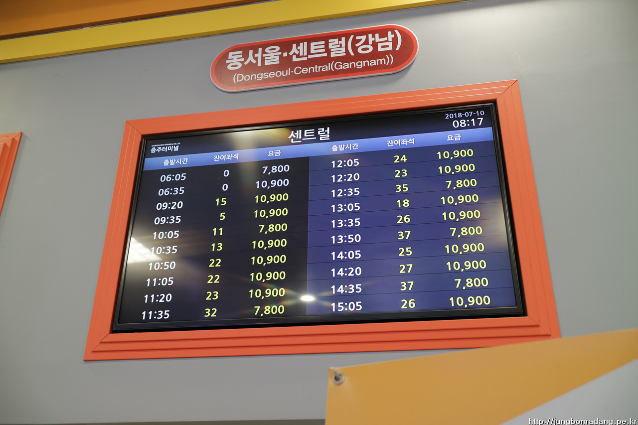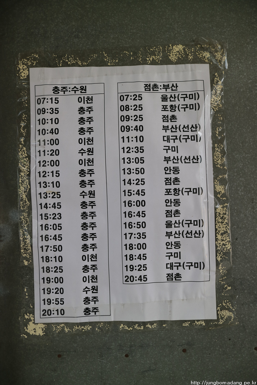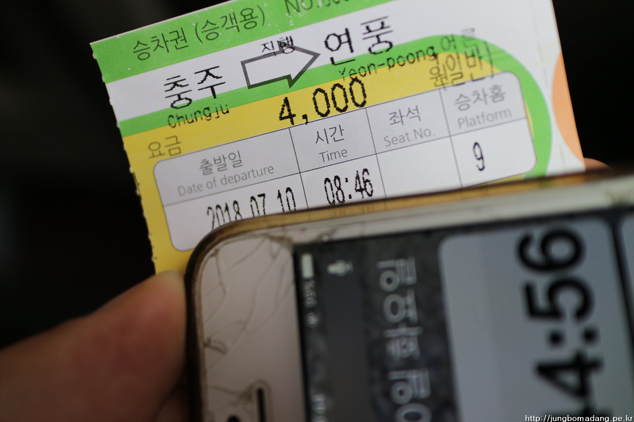 한시간 하고도 절반의 시간이 더 지나 충주에 다다릅니다. 목적지가 괴산 연풍인데 서울서 다이렉트로는 못가고 괴산이나 충주를 경유해야하는 데 그와중에도 충주가 버스편이 좀 자주 있더라구요. 동서울에서 충주는 7800원, 충주에서 연풍은 4000원입니디. 가격과 시간 모두 가상비 좋은 루트입니디. 충주 가는 건 우등과 일반 버스가 섞여있는데 전 당연히 저렴한 일반노성로 ㅋㅋ