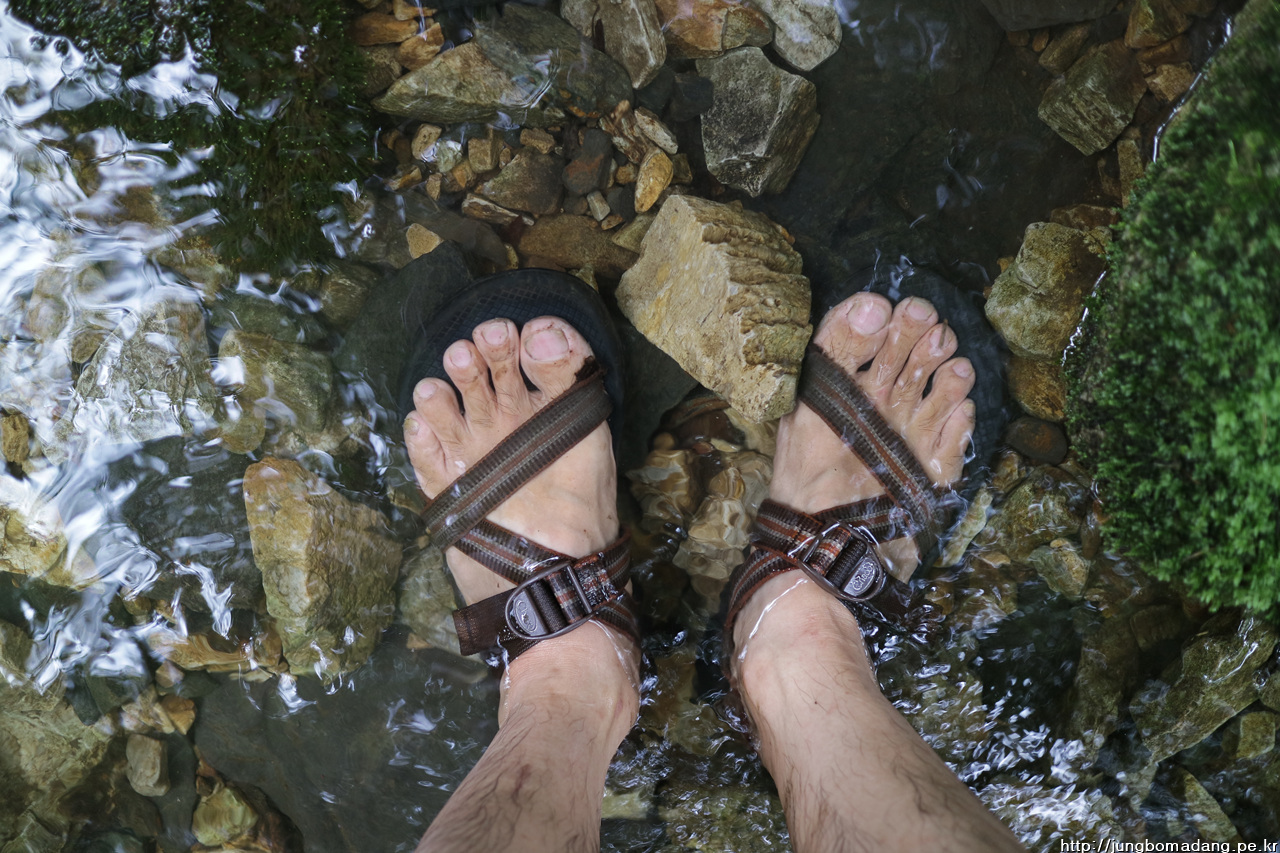 하산길에 접어들어 시원한 계곡이 절실했는 데, 드디어 조우합니다!