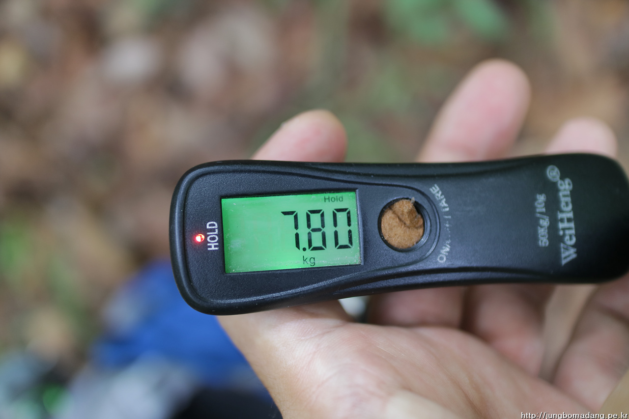 현재 배낭 무게는 7.8Kg, 막걸리 1.5Kg가 들어갔음을 염두해 둡니다.