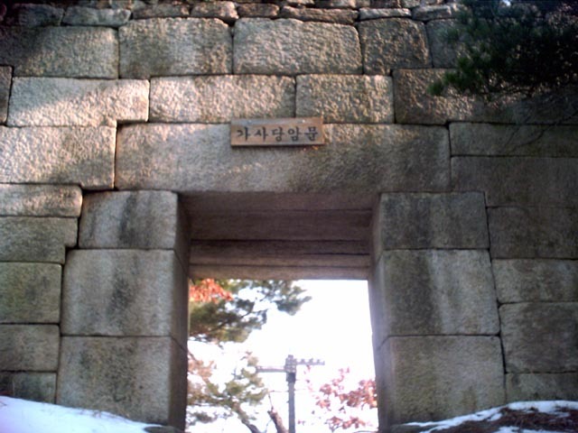 5. 09:18 [가사당암문 - 제03문] 국녕사에서 9분 소요. 여기서 백화사방면으로 잘못 진행하는 바람에 다시 이곳으로 되돌아 오면서 20분을 지체, 대남문방면(국녕사에서 이 문을 통과하지 않고 좌측으로 진행)으로 진행. 즉, 가사당암문 윗길로 이동하게 됨. 대남문까지 2.5km 남음. 되돌아와 09:38 에 이어 진행.