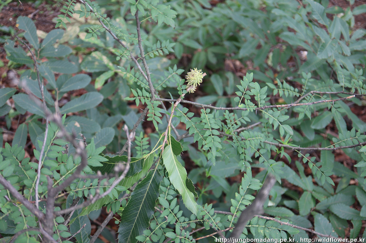 산초나무 같은 데 열매가 도토리? 알고 보니 상수리나무의 열매가 달린 가지 일부가 산초나무 위로 떨어진 것입니다.