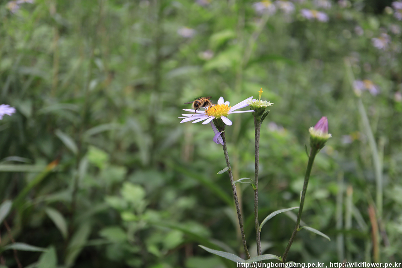 꿀벌이 비비추에게 이야기합니다 : "야~ 꿀 좀 줘봐!"