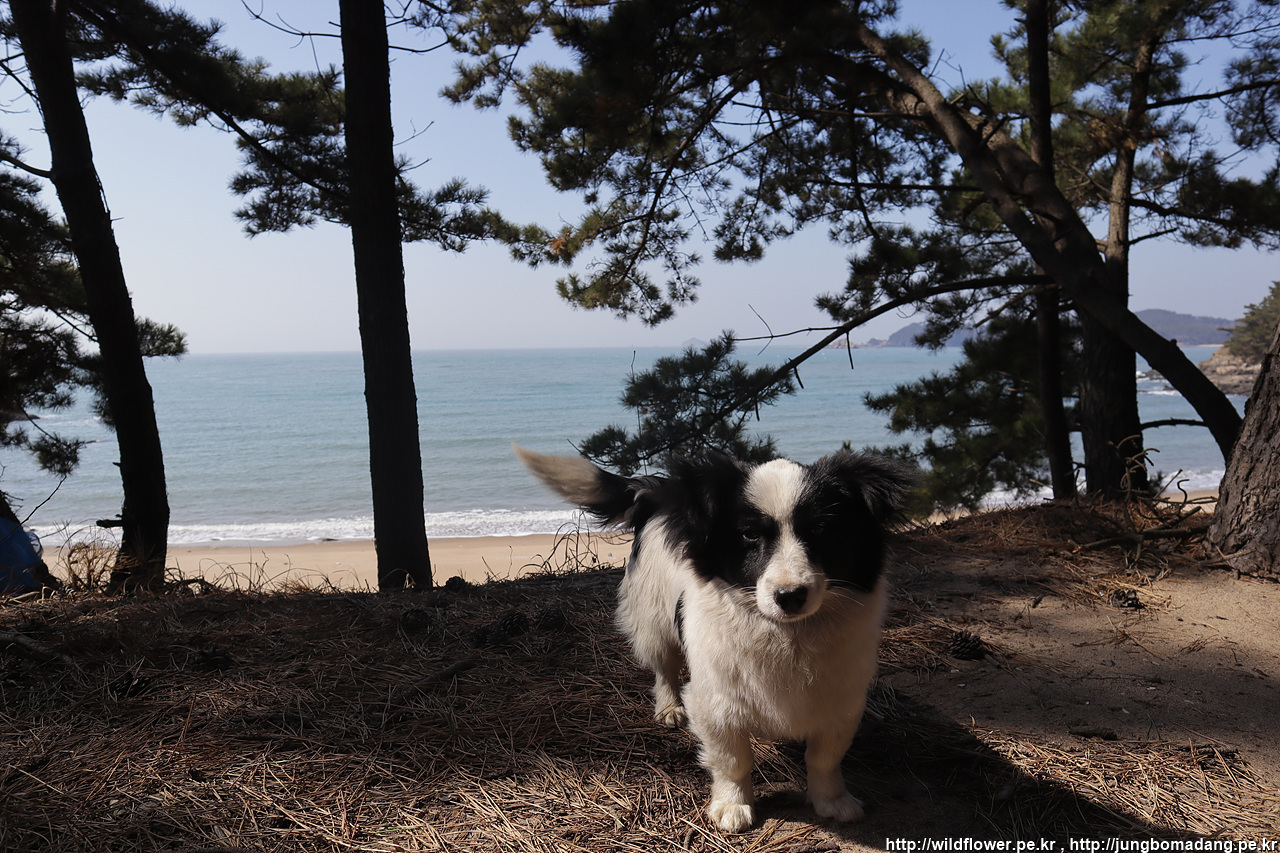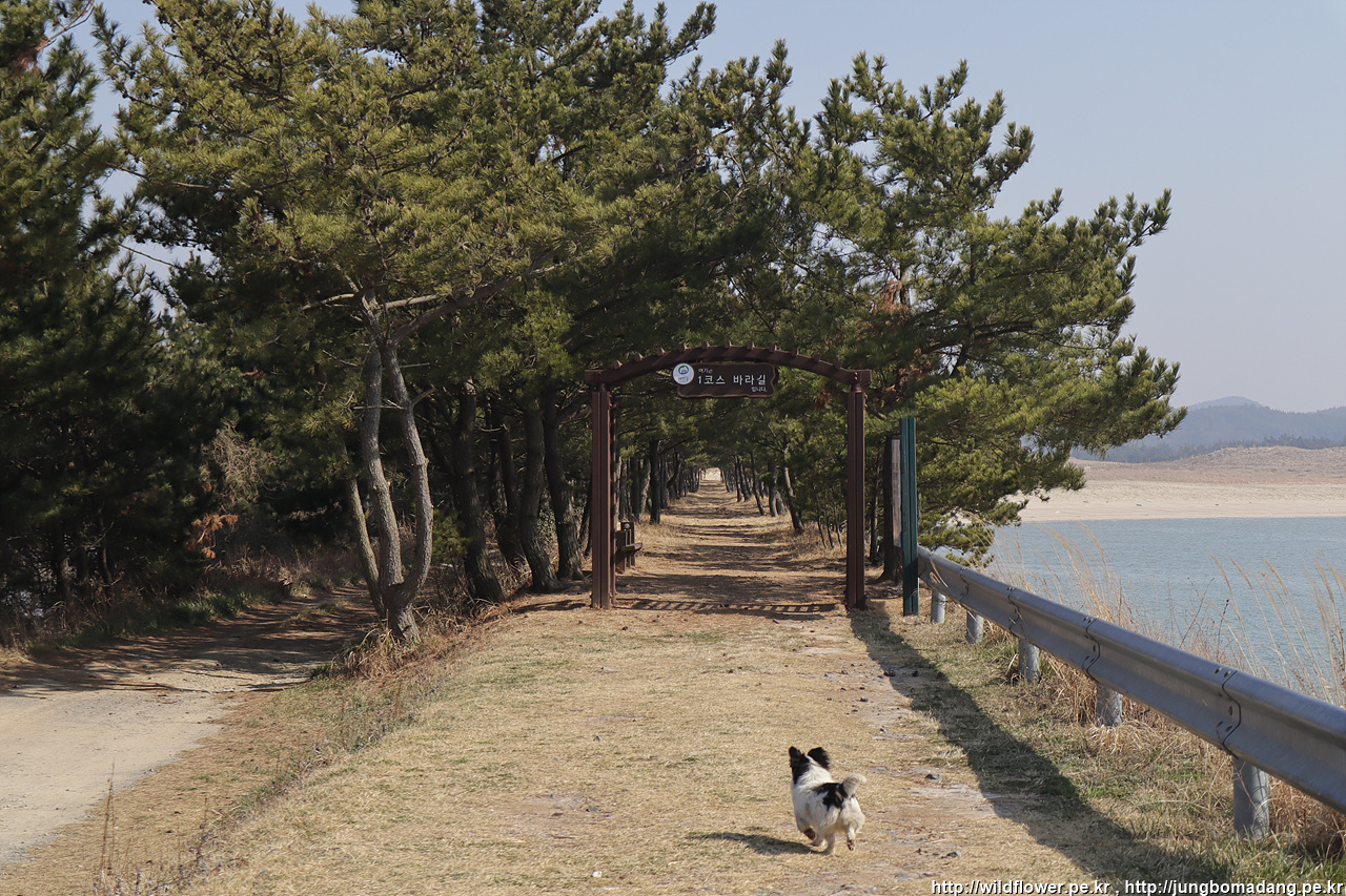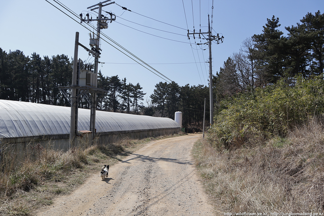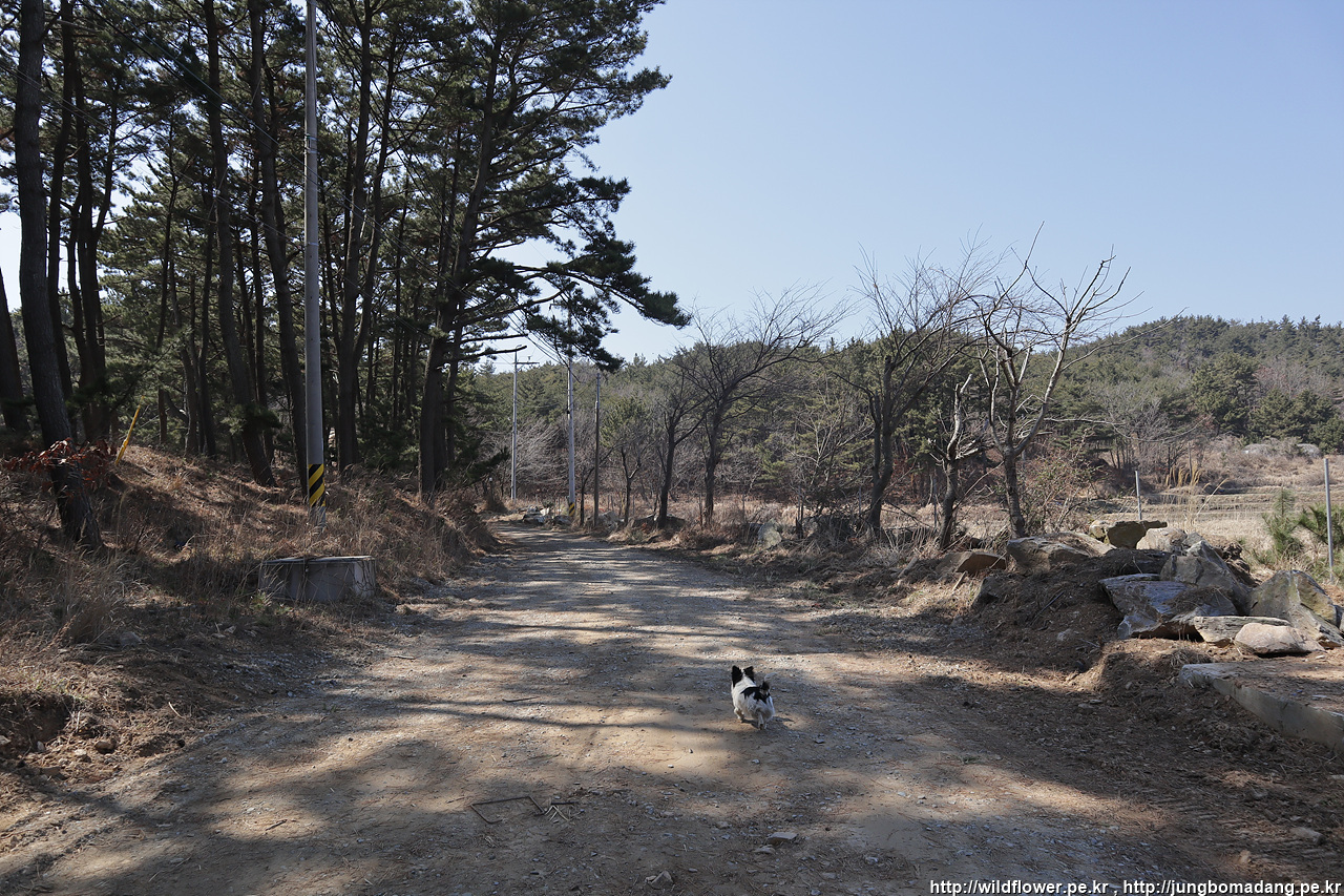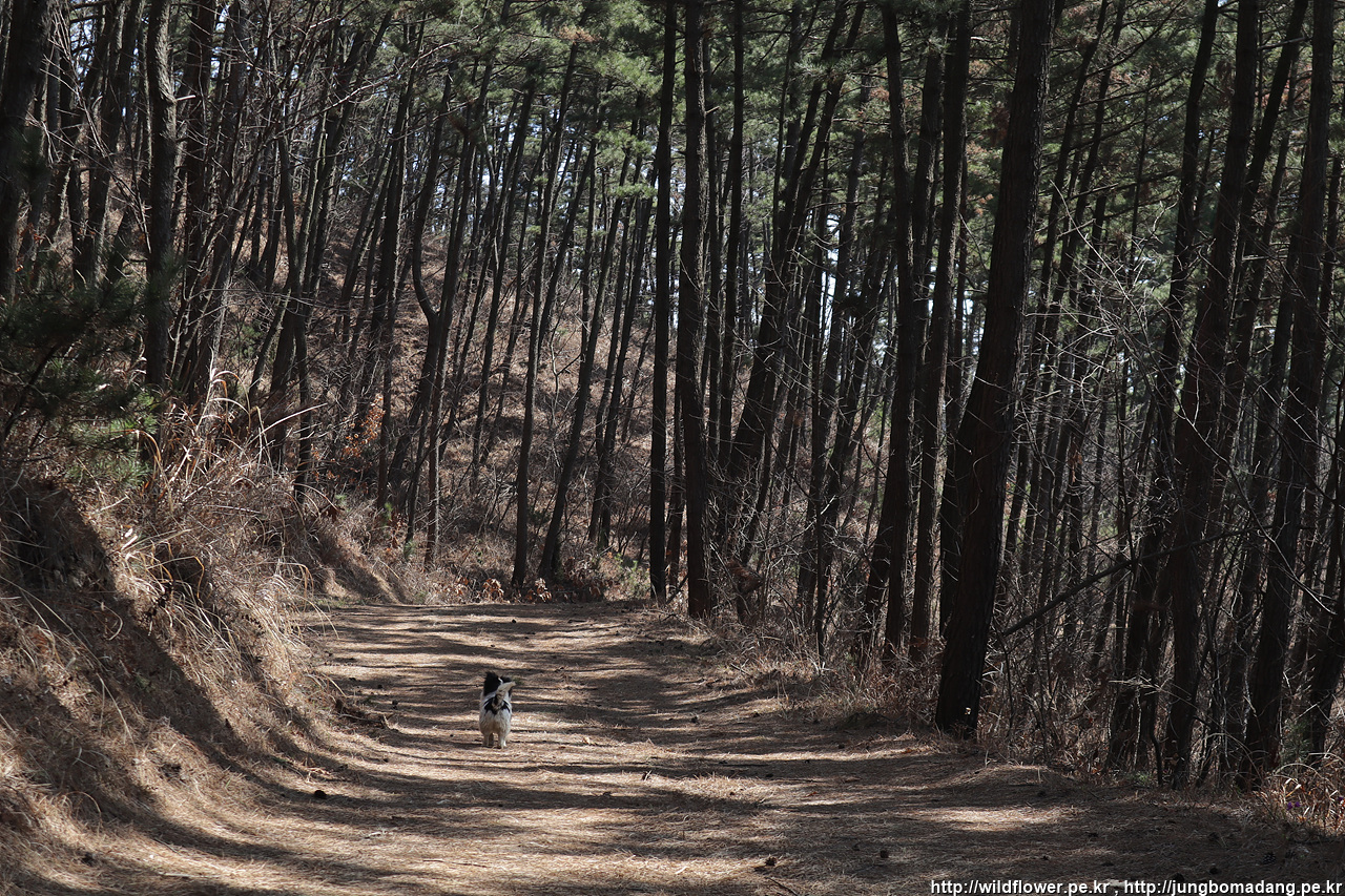 짖지도 않고 참 순한 댕댕이군... 하고 생각했지만, 왼편에 툭 튀어나온 고라니를 보더니 왈~ 왈~ 짖어댑니다 ㅠ