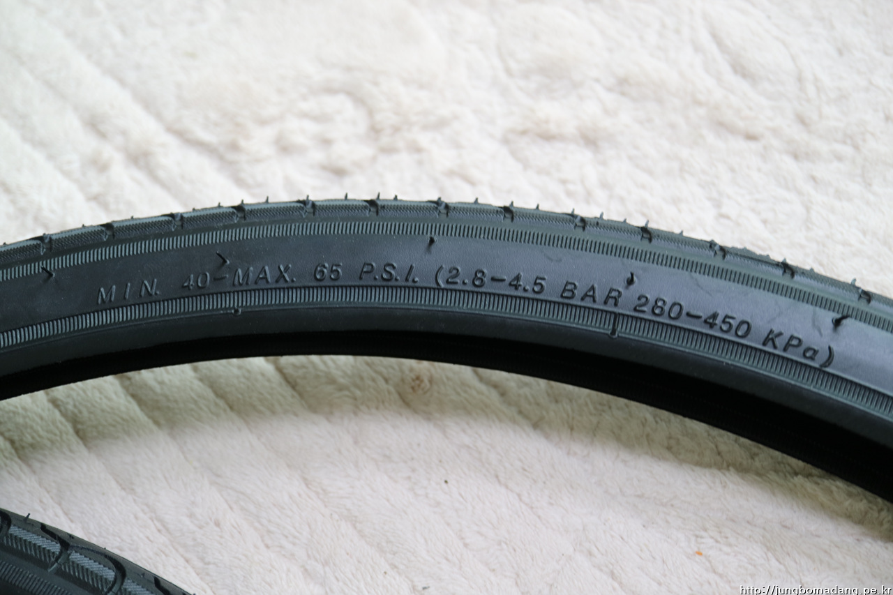 공기압 40 ~ 65 PSI - 저는 보통 45 PSI 정도 공기를 주입해서 다닙니다.