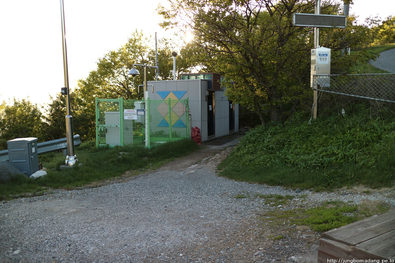 텐트를 치긴 좀 시간이 애매, 곧 해가 뜰거 같아서 침낭만 꺼내서 정자에서 잠시 누워 봅니다.