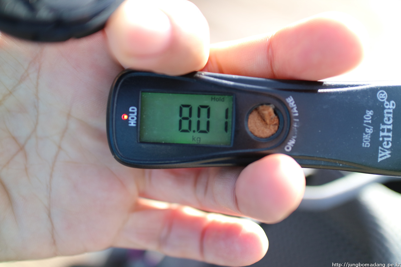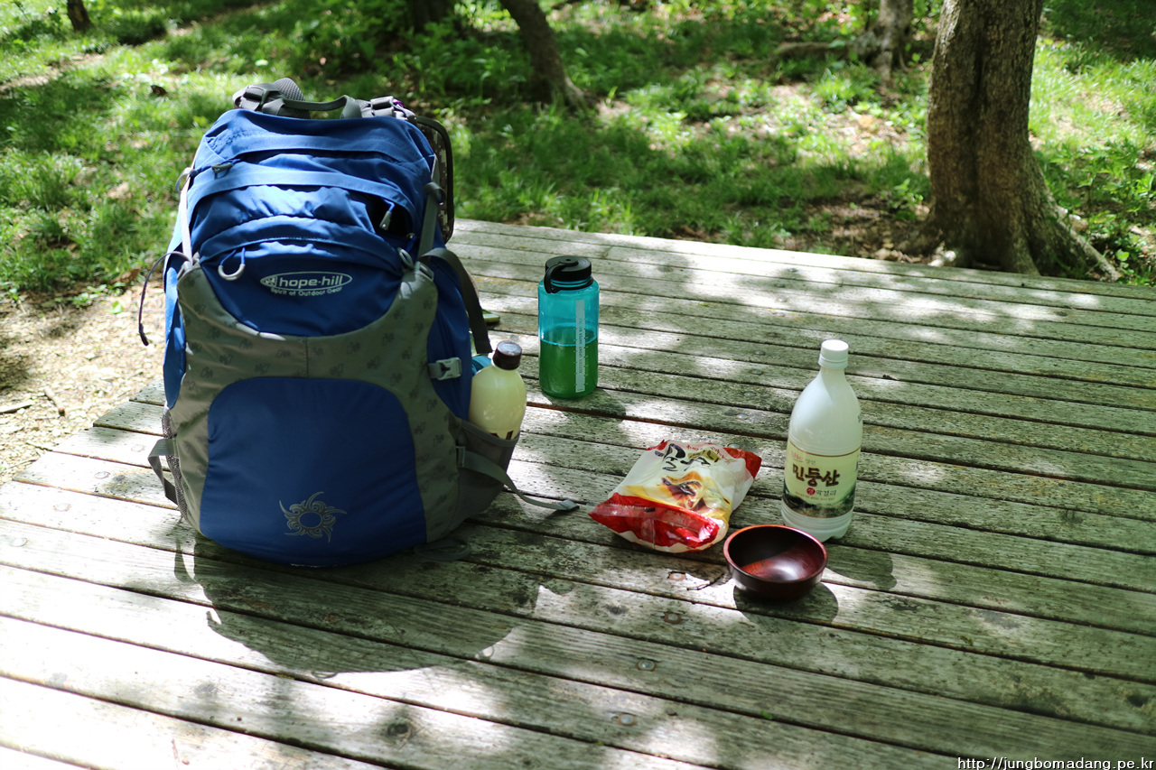 현재 배낭무게는 8.74kg. 750ml 짜리 막걸리 한병 포함입니다.