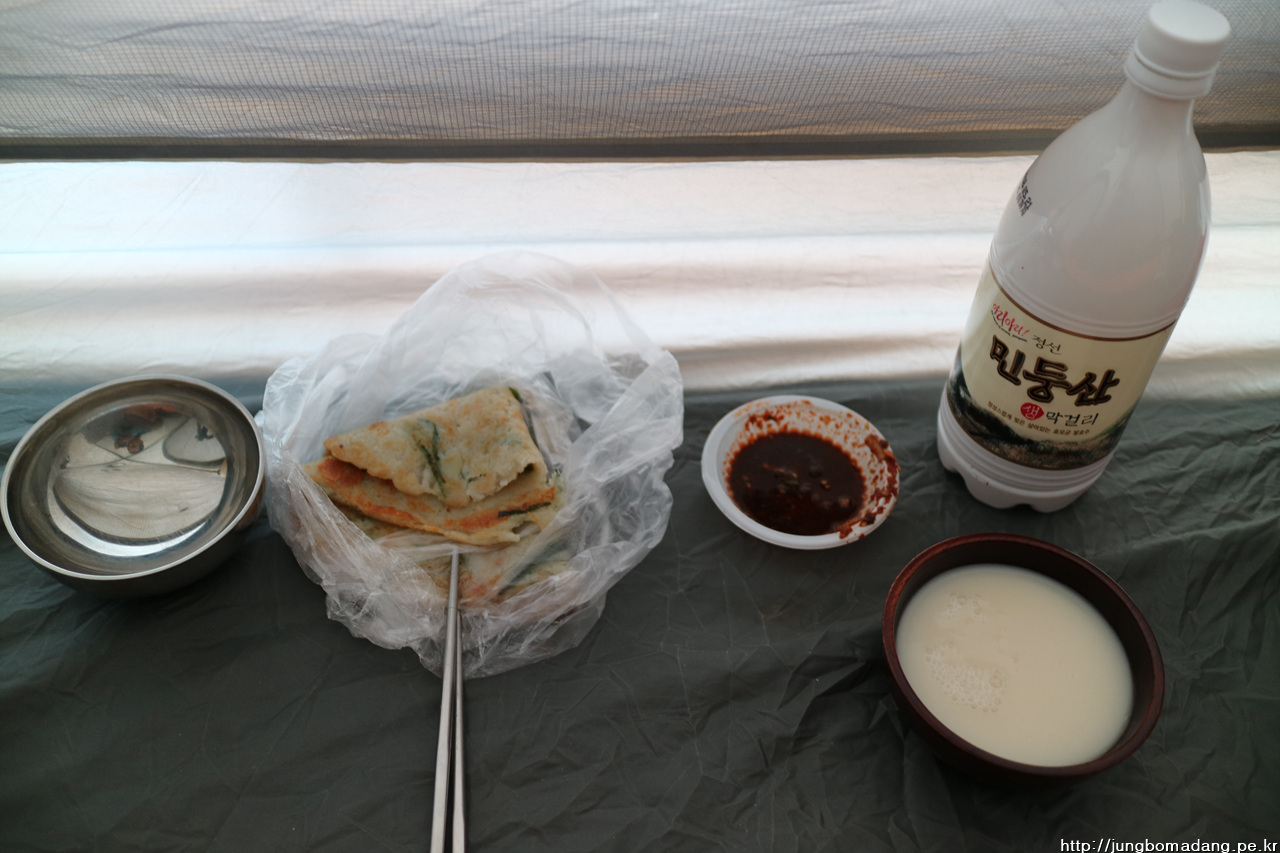 기상 후 할일은 텐트 말리면서 이른 아침으로 전투식량(뜨건물은 어떻해?? 사실 출발때 미리 뜨신물 넣고 온 터라 차갑게 식기는 했지만 먹을만 하네요. 일종의 팁?이랄까요 ㅋㅋ)과 남은 막걸리를 헤치우고 화장실서 시원하게 그분도 보내 드리구요 ㅋㅋㅋ