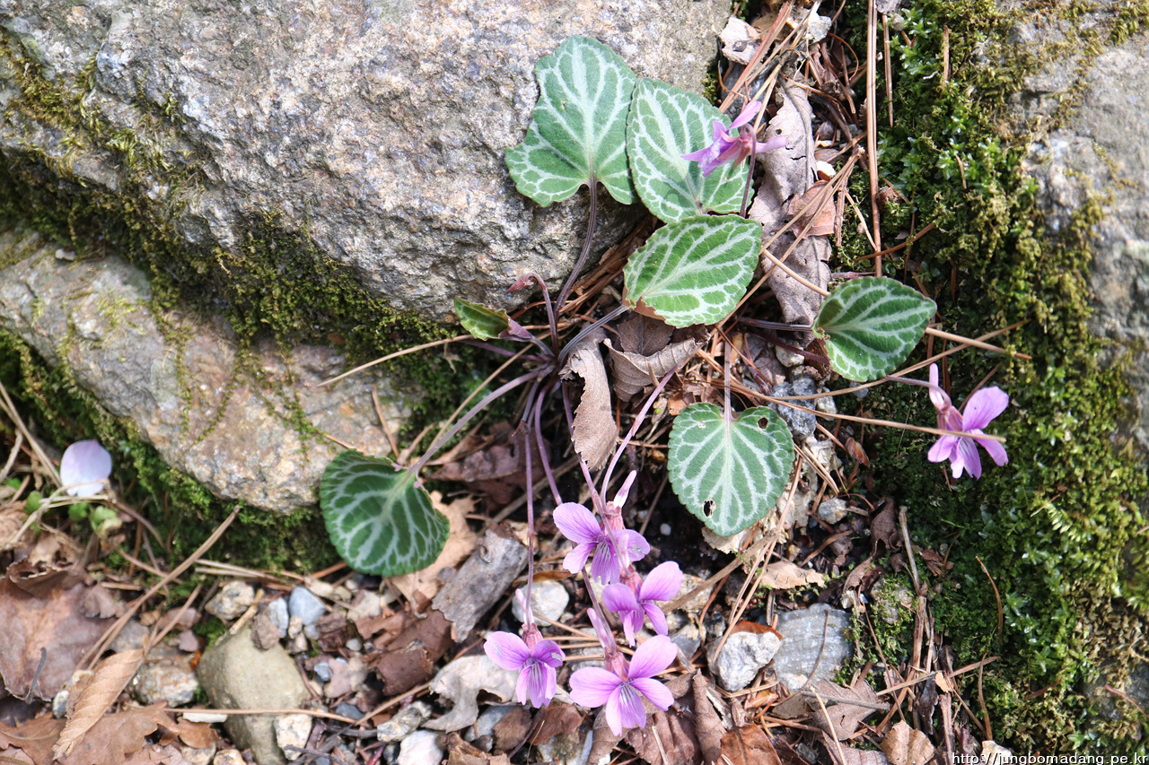 알록제비꽃 - 잎이 알록 알록 흰 줄무늬가 있어 알록제비꽃입니다.
