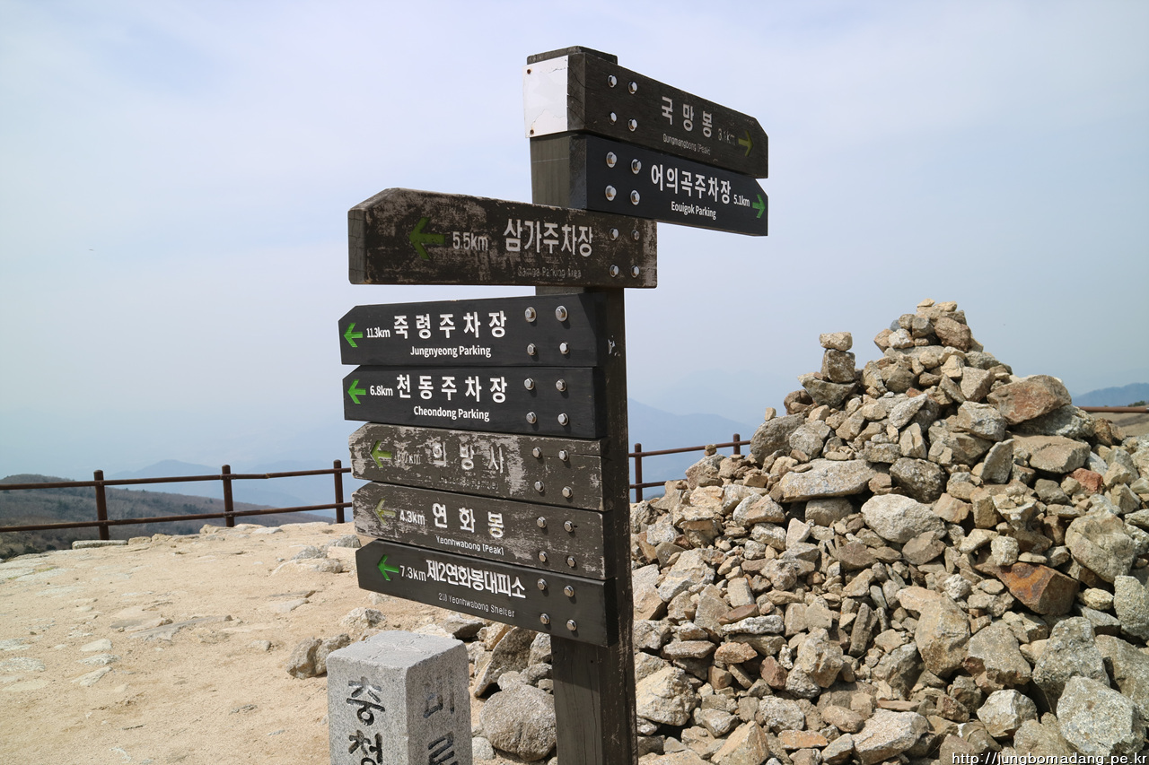어의곡갈림길. 국망봉 방면은 산불방지 기간으로 출입금지