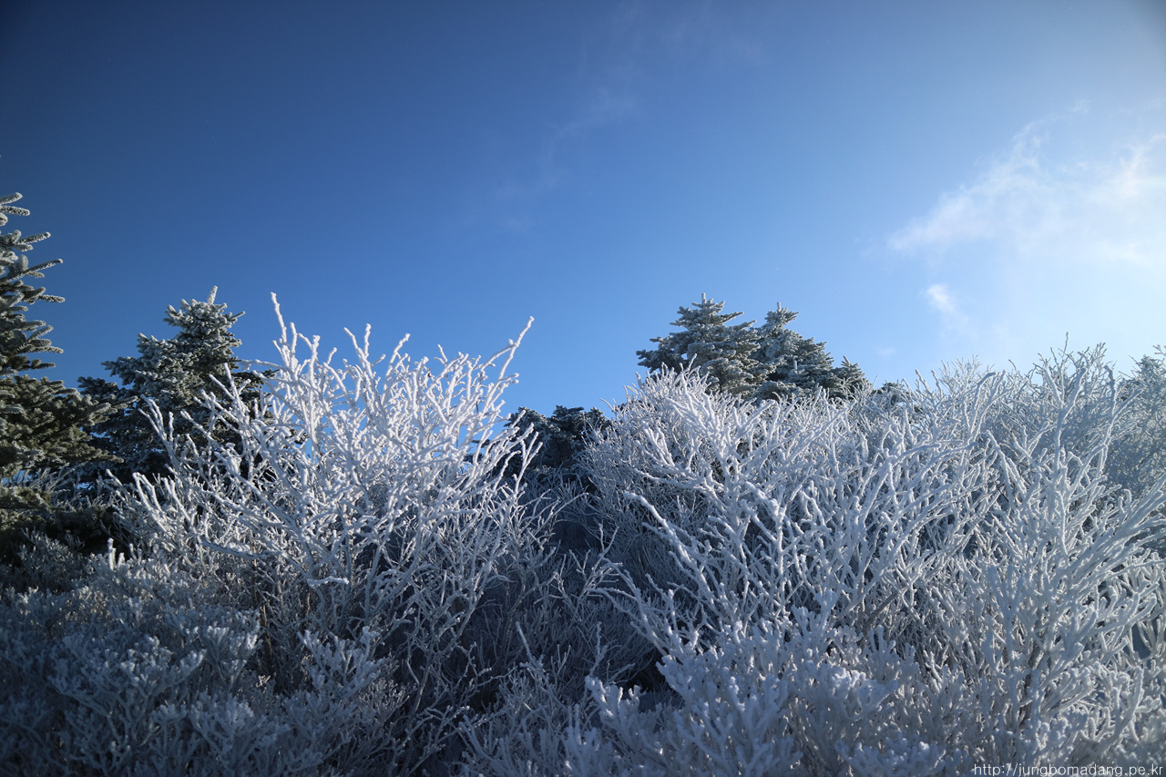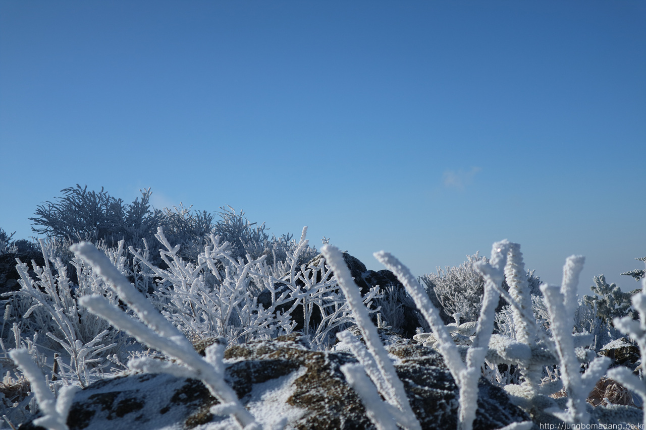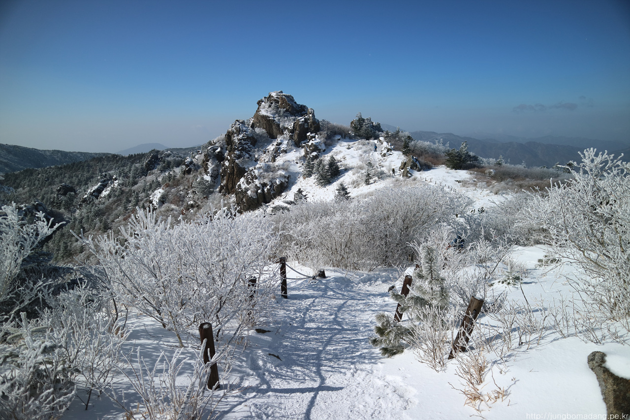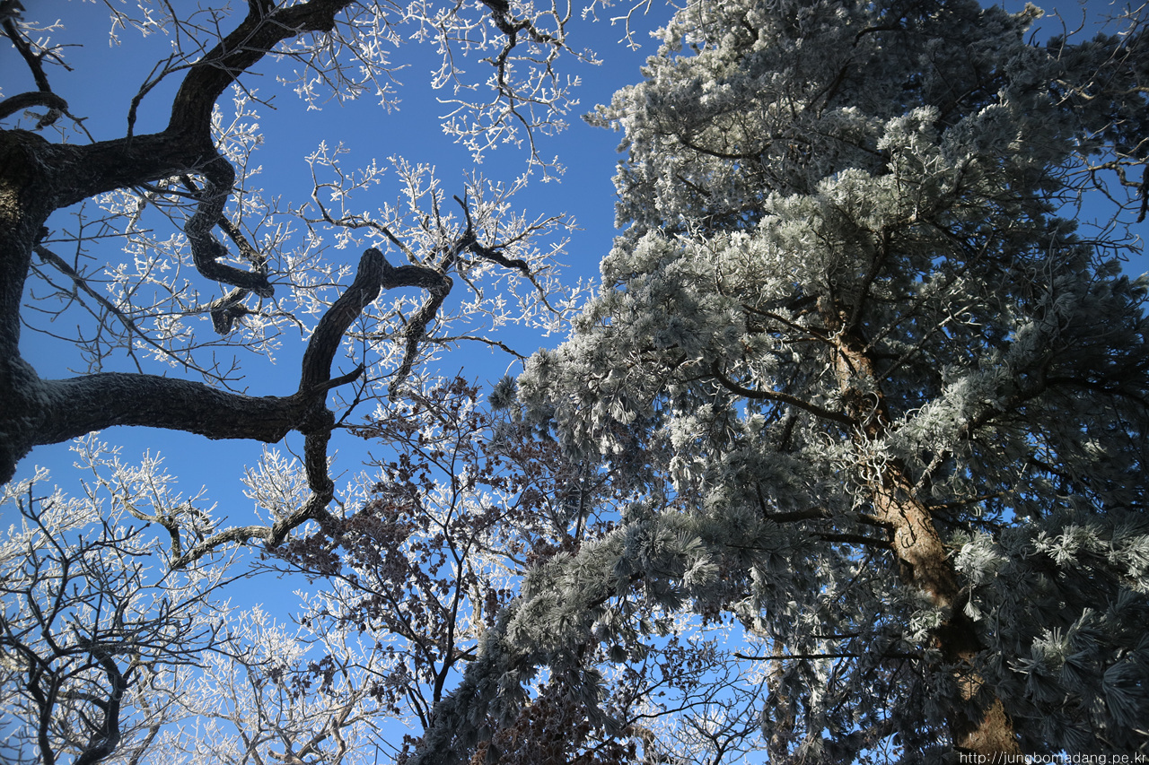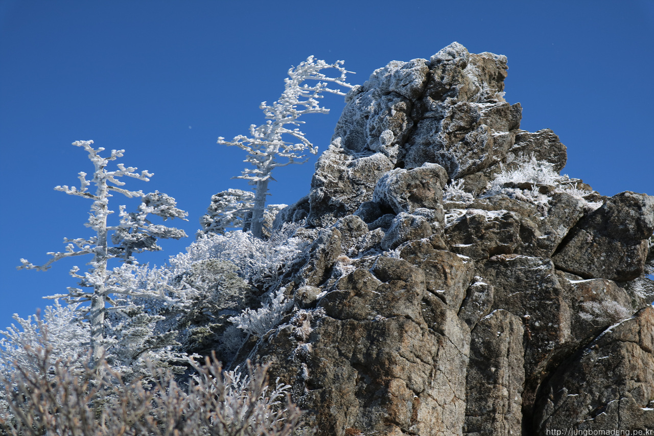 바위와 눈꽃을 머금은 나무와 잘 어울어집니다.