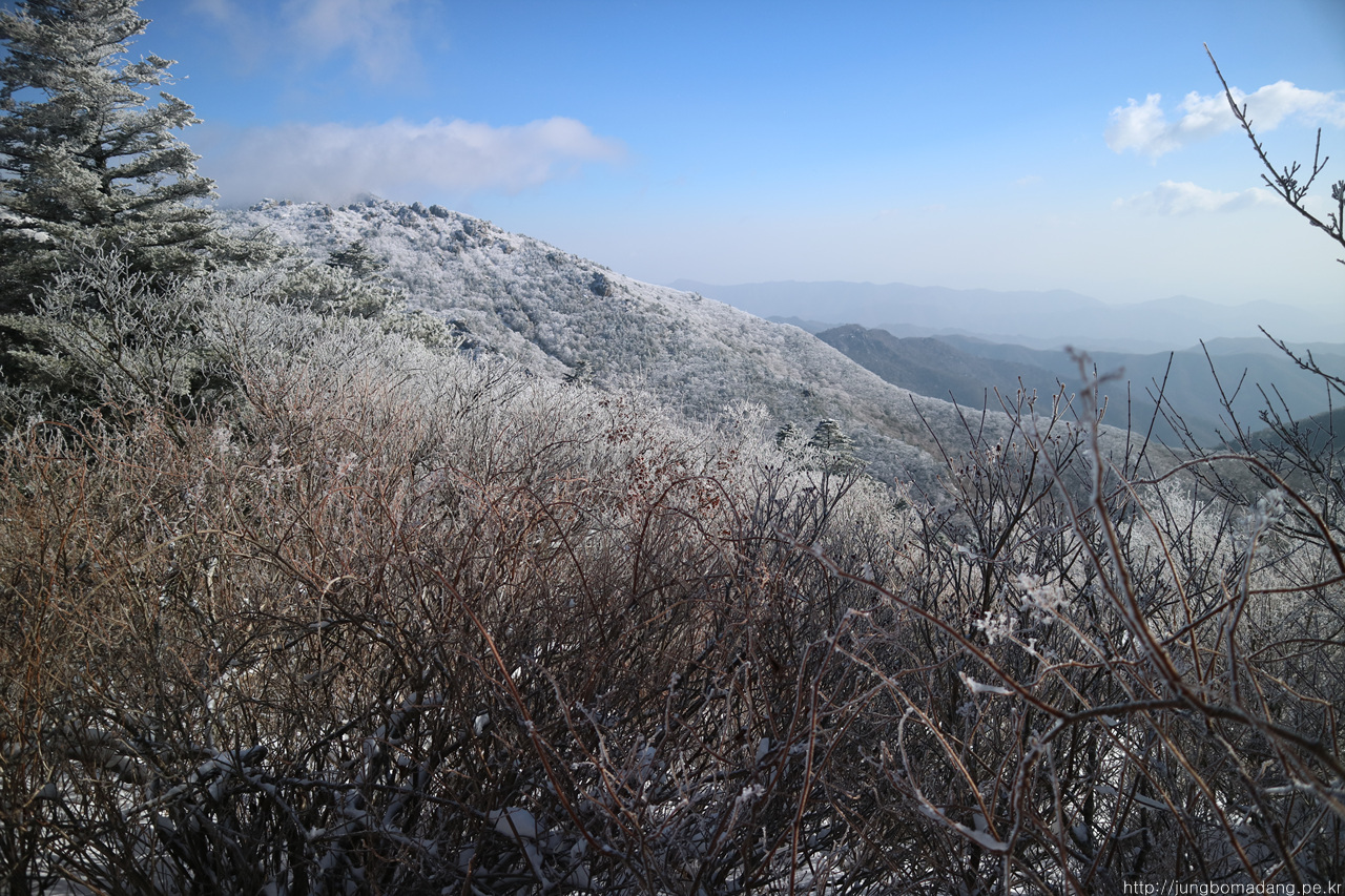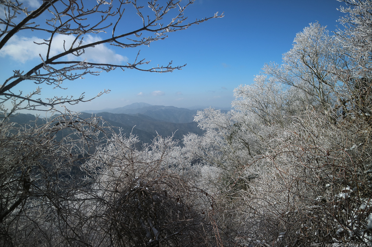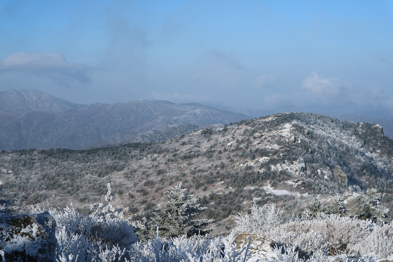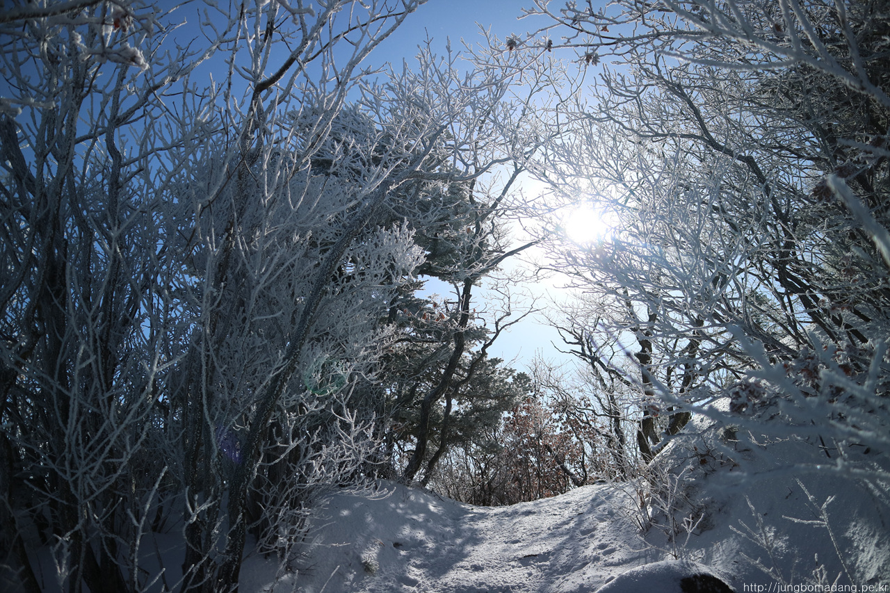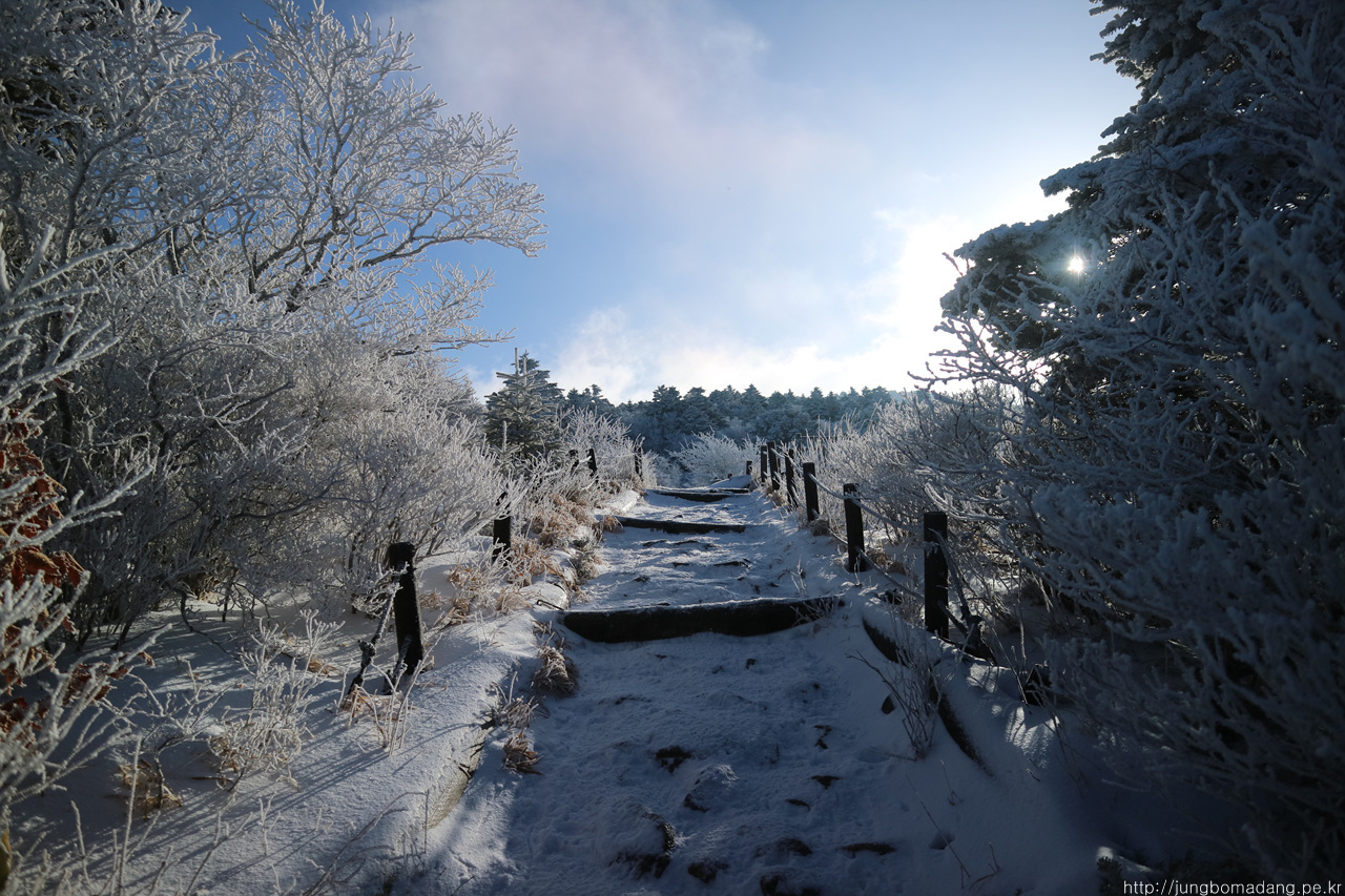 바위와 눈꽃을 머금은 나무와 잘 어울어집니다.