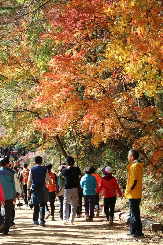 12:43 오대산 선재길 출발!. 역시 단풍이 절정이라 탐방객이 많네요.