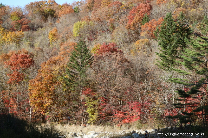 오대산 월정사 몇키로 전... 단풍도 절정이지만, 차막힘도 절정입니다. 이유는??? 매표소에서 돈 걷는 행위덕분에 막힌 걸로 확인 되었구요. 입장료 인당 무려 3000원.