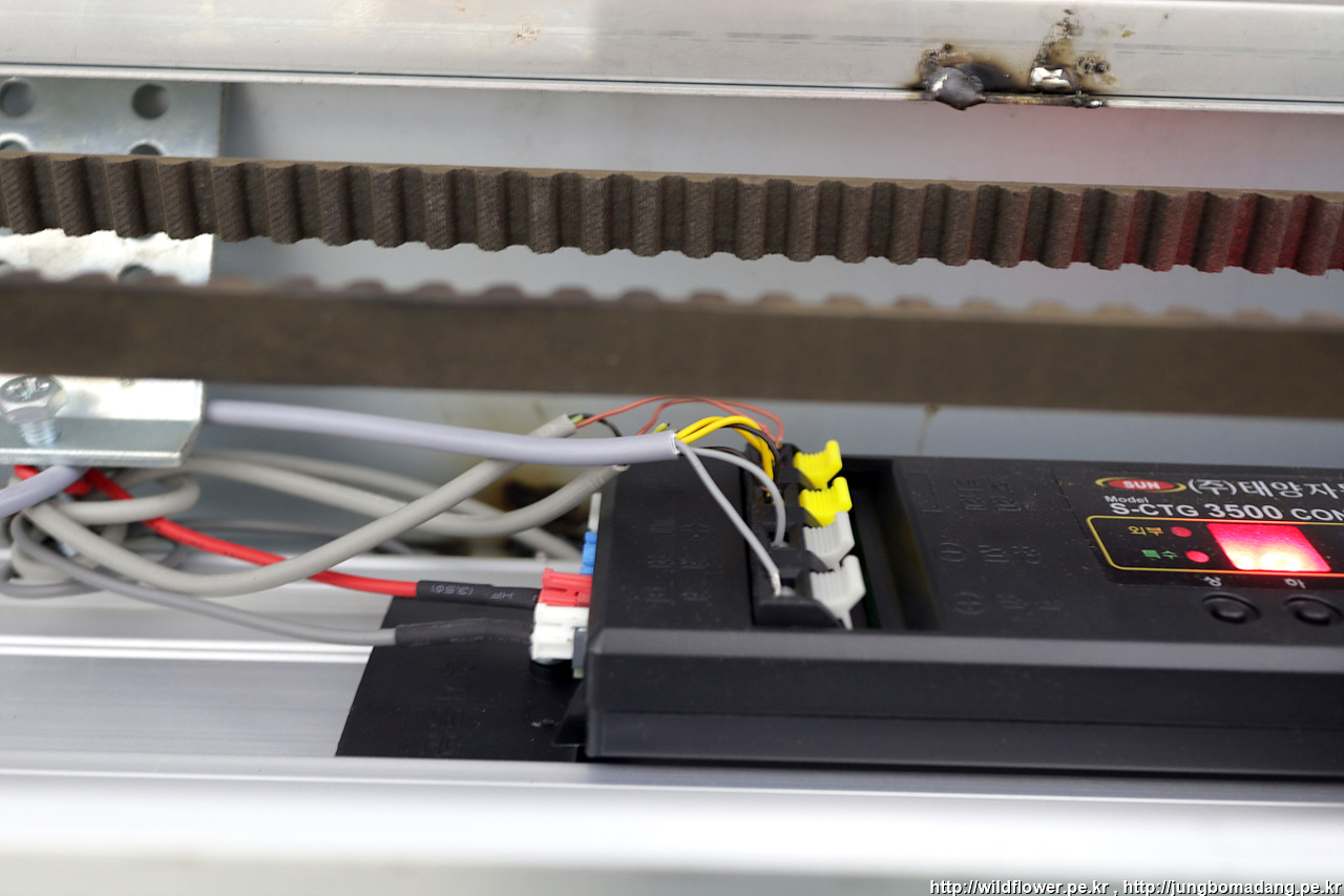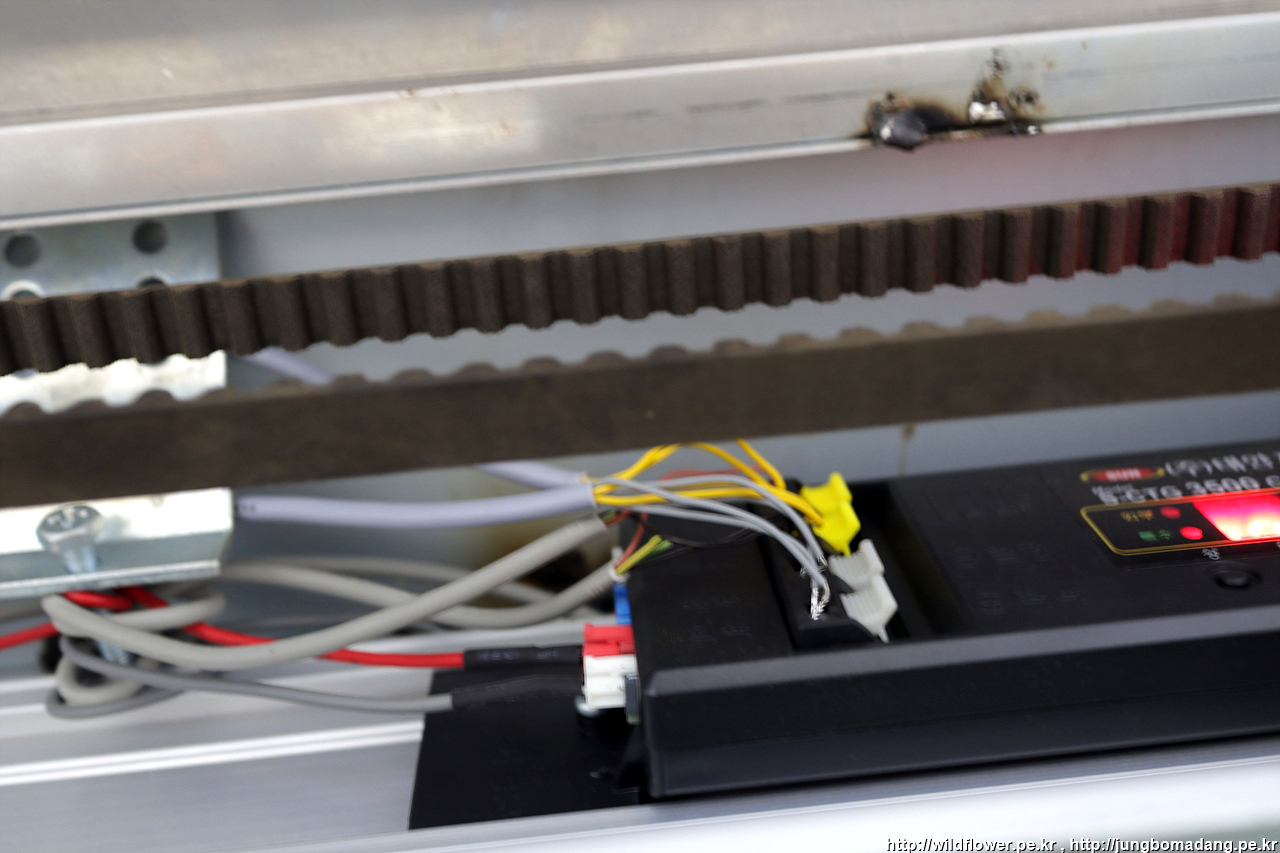배선은 이렇게 뒤쪽으로 해야 되는 데 가설치라 그런지 고무 체인에 닿네요. 동작 테스트된 것 확인 했으니 이제 본격 설치 들어갑니다.