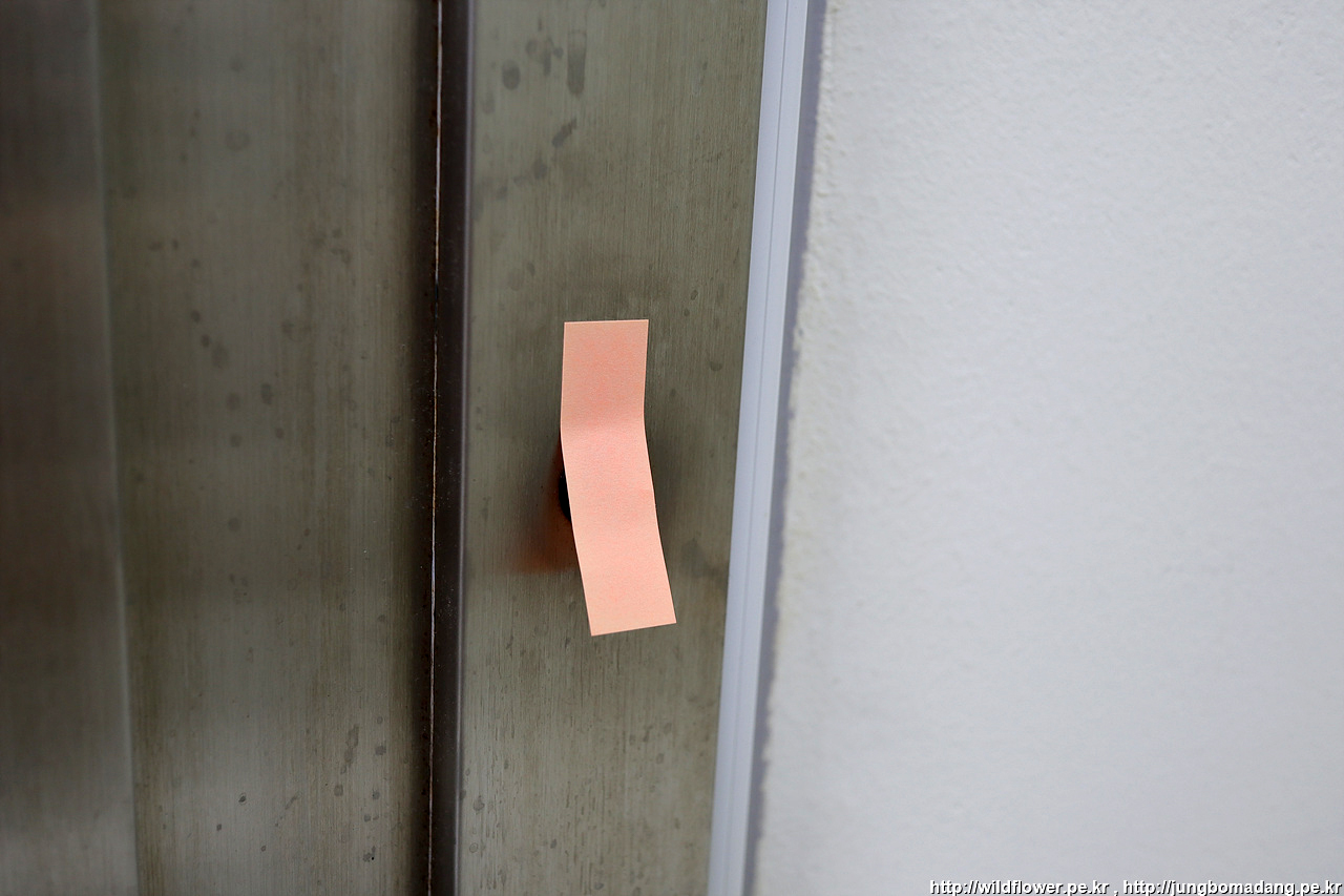 문이 개방된 상태로 이렇게 포스트잇으로 센서를 가려주면 문이 동작하지 않습니다.