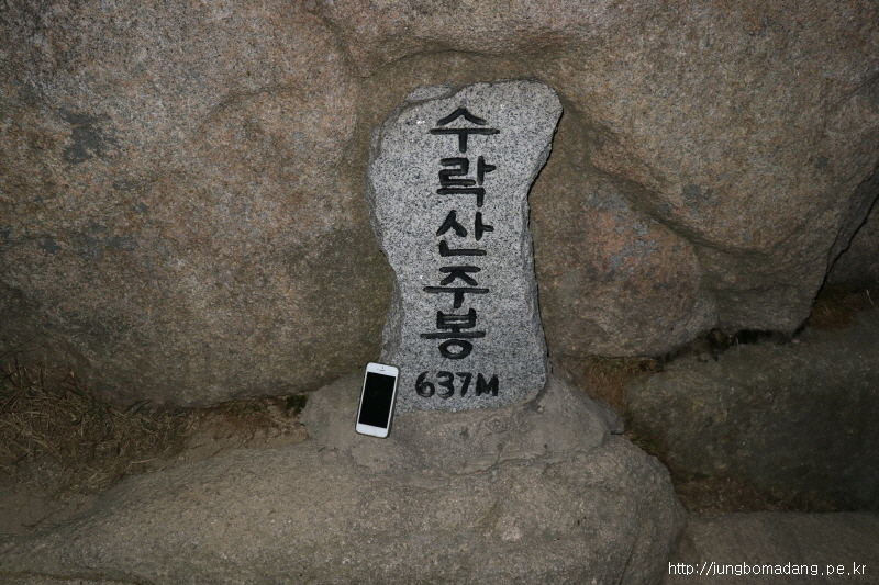 03:03 출발 1시간 13분이 지나 불암산 정상에 도착합니다. 뭐 쾌적하네요!. 인증은 블로그에는 인물사진 올리지 않는 특성상 아이폰5가 모델을 하기로 합니다. ^^