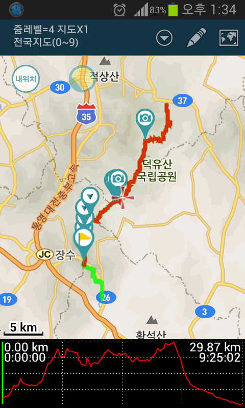 서봉에서 30분후에 남덕유산 정상에 도착합니다. ^^ 일단 지도상으론 여기부터는 길이 좀 평화로울 거 같은 데...... 참고로 여기까지 콜라 300ml만 먹었습니다.