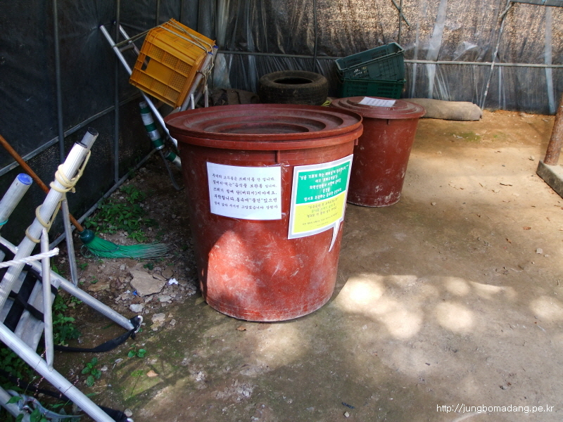 쓰레기통이 아니라, 저 통안에 있는 음식물등을 상원사로 옮기기 전 보관용이라고 하네요.