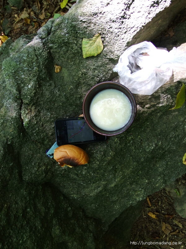 첫번째 휴식시간! 아침을 안먹어서 시장기가 있어 막걸리 한잔에 베이글빵 양평산에서 먹다가 보관해둔것 먹습니다.