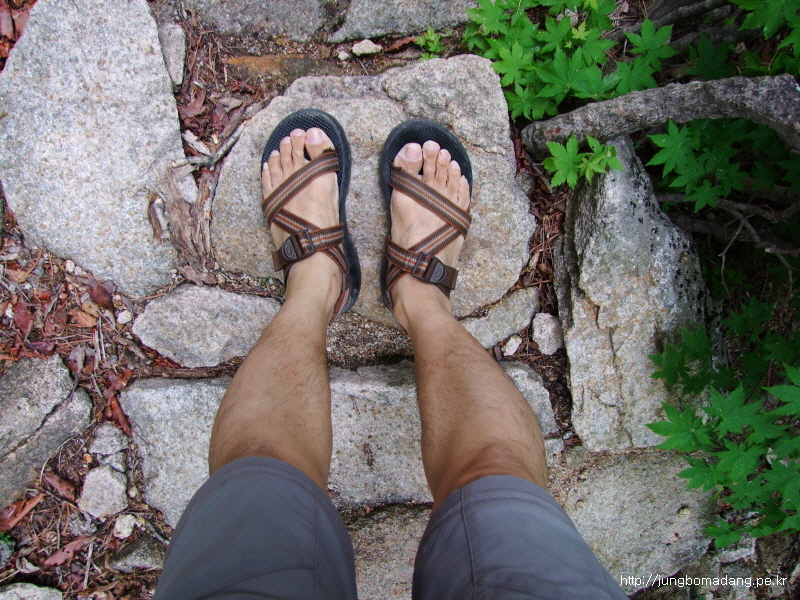 이번엔 독특하게 아웃도어용 샌들을 장착하고 진행할까 합니다. 발에 땀이 차지 않아 좋고, 시원해서 좋고 단점보다는 장점이 많네요. - 제기준