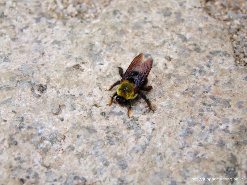 강풍과 힘들게 사투를 벌이다가 바위에 붙어 바람에 날아가지 않으려 애쓰는 벌 한마리... ㅠㅠ