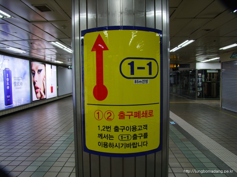 을지로입구에서 강변역 첫차인 05:30 전철을 이용하기 위해 이동하는 데, 1,2 출구 공사로 폐쇄되어 잠시 당황 ㅠ