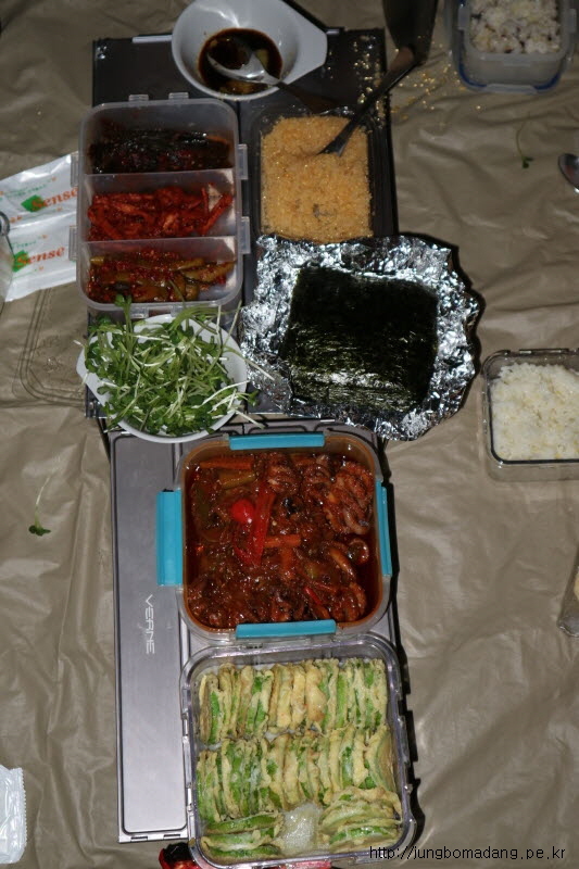 정자에서 무려 두시간 동안 이런 식사도 하고, 막걸리도 마시고, 이런 저런 이야기를 나누어 봅니다. ^^
