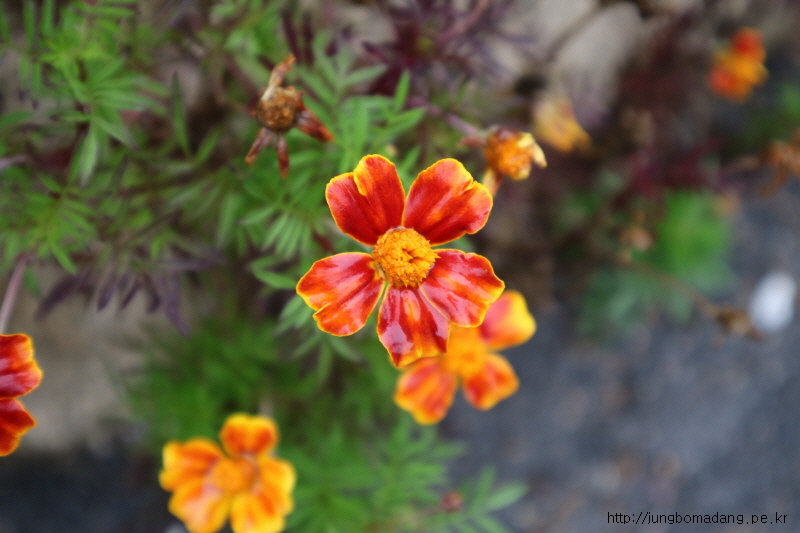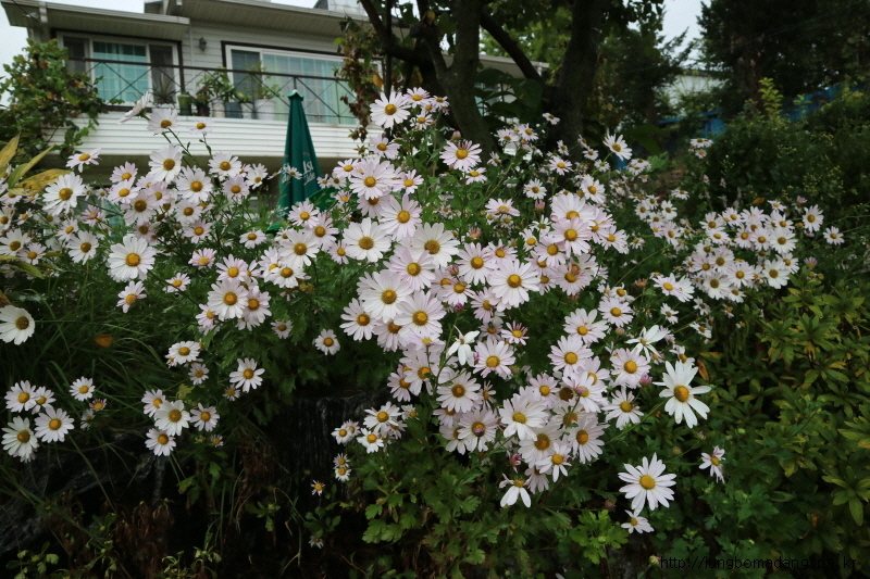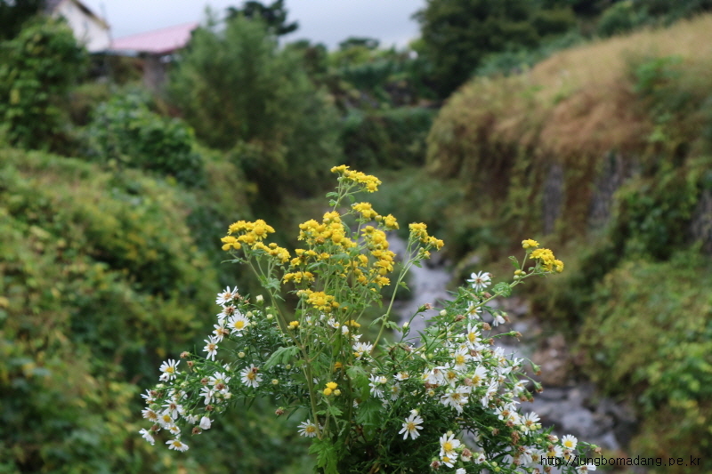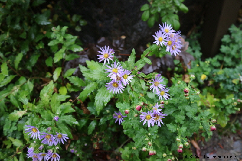누군가 미국쑥부쟁이와 산국을 한움쿰 채어 길가 울타리에 꽂아 두었네요.