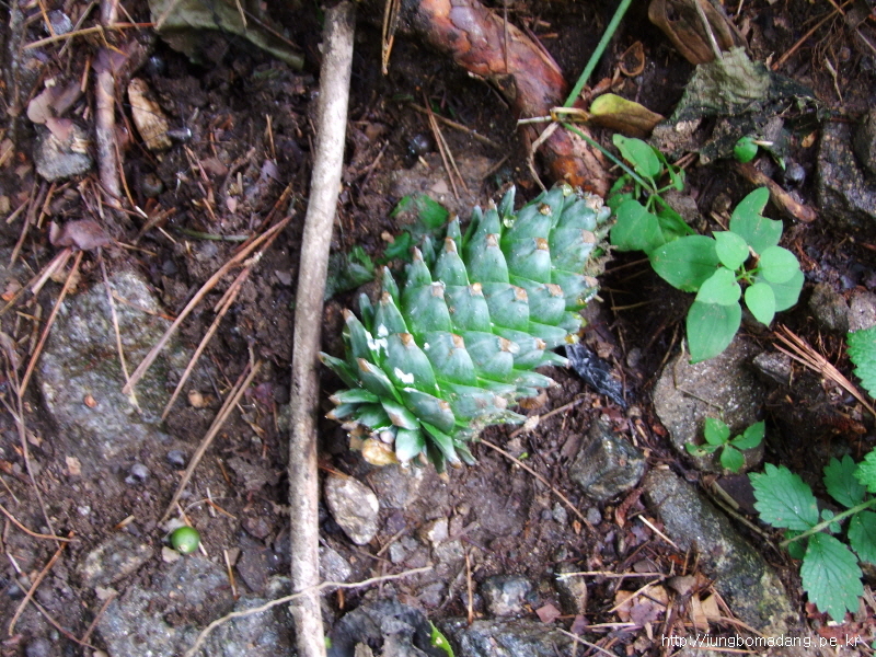 이른듯 잣송이가 떨어졌네요. 청솔모의 소행?