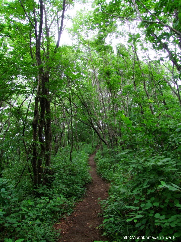 약간의 계단 오름을 뒤로 하고 계방산 속을 거닐게 됩니다. 출발부터 흐린 날씨에 선선한 그늘이 쾌적함을 제공해 주네요.