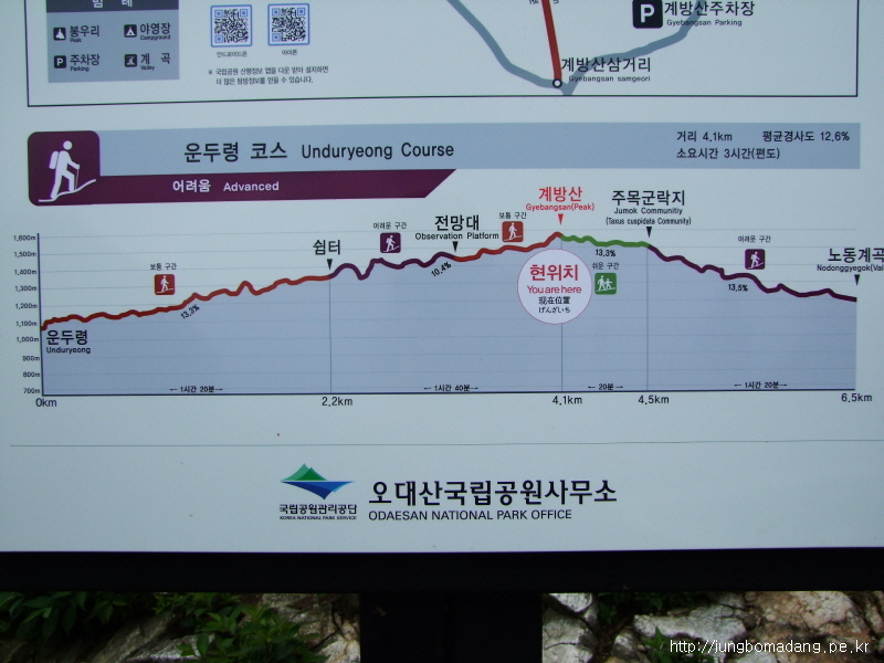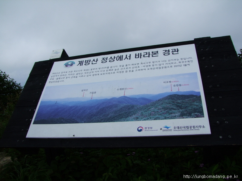 오대산국립공원 영역임을 인증하는 표시